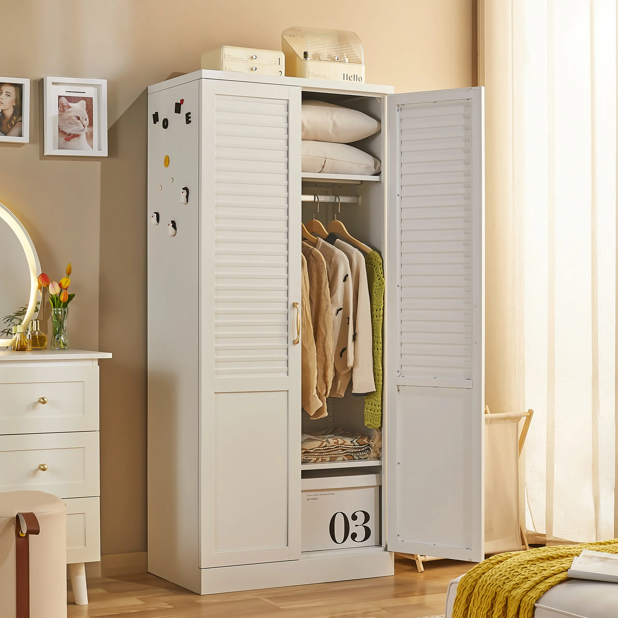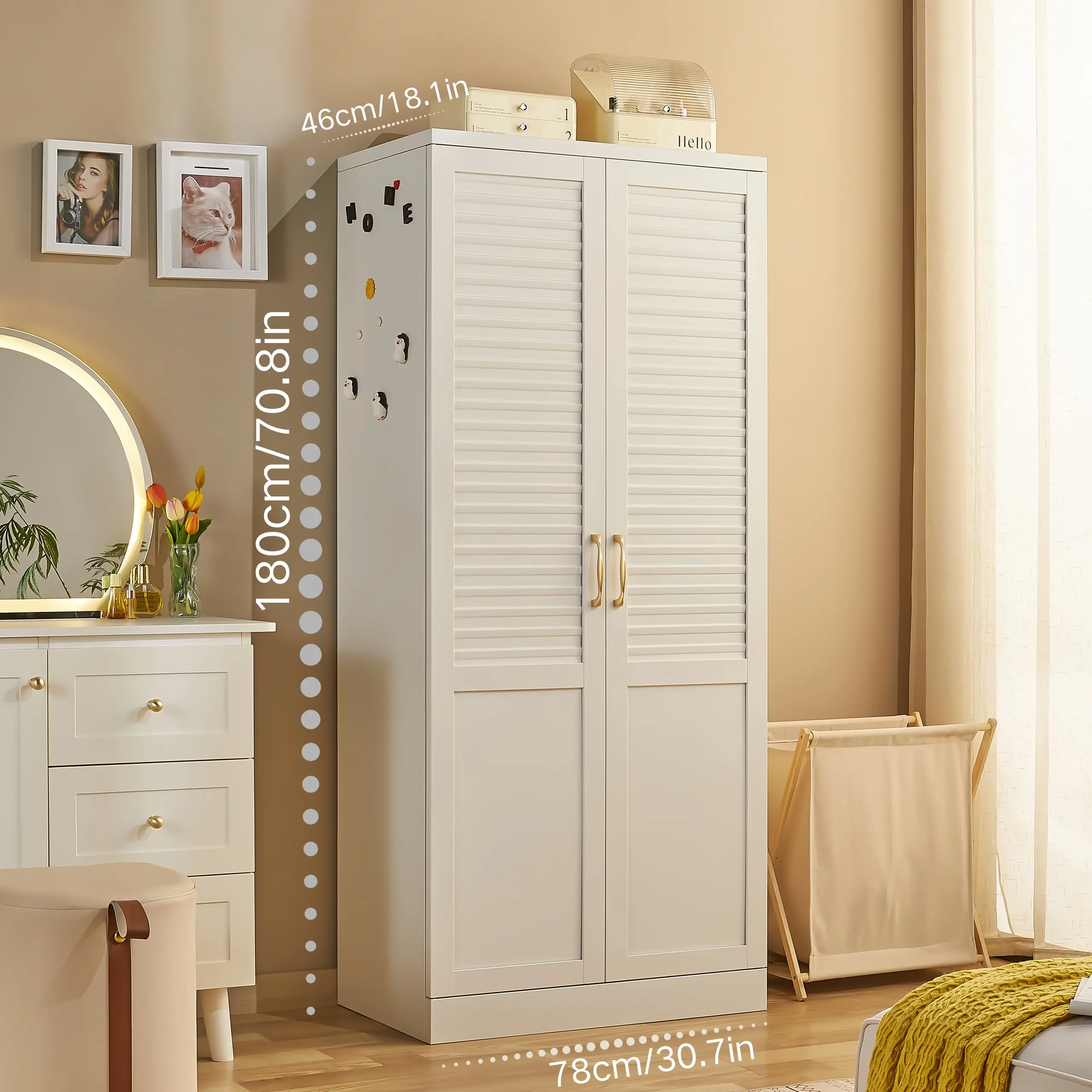 71" Tall Metal Wardrobe Closet with Hanging Rod, Adjustable Shelves – Durable Steel Armoire for Home or Office