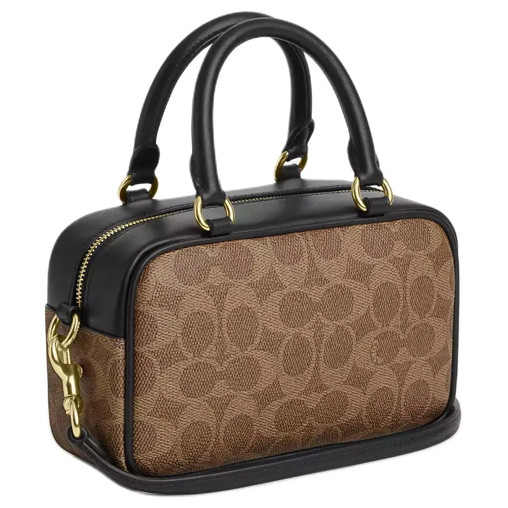 Materials: Premium coated canvas (water-resistant, scratch-resistant finish) with smooth pebbled leather trim, polished brass hardware, and soft microfiber lining.