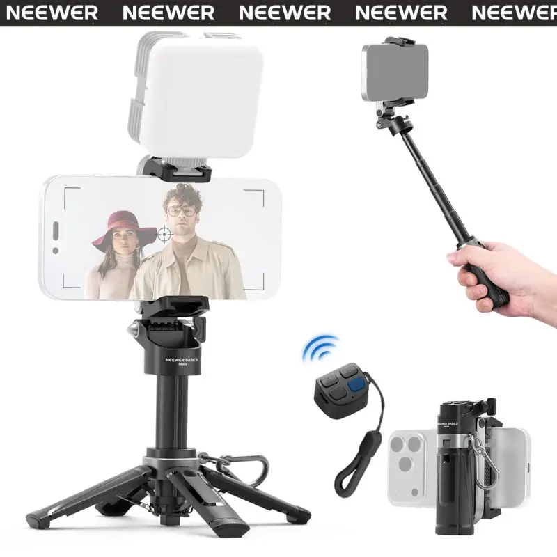 ·Wireless Shutter Release- The small phone tripod stand comes with a detachable remote, easily installed onto the handle for zoom, focus, and shooting control. It also stores neatly on top to prevent loss and supports standalone Type C charging