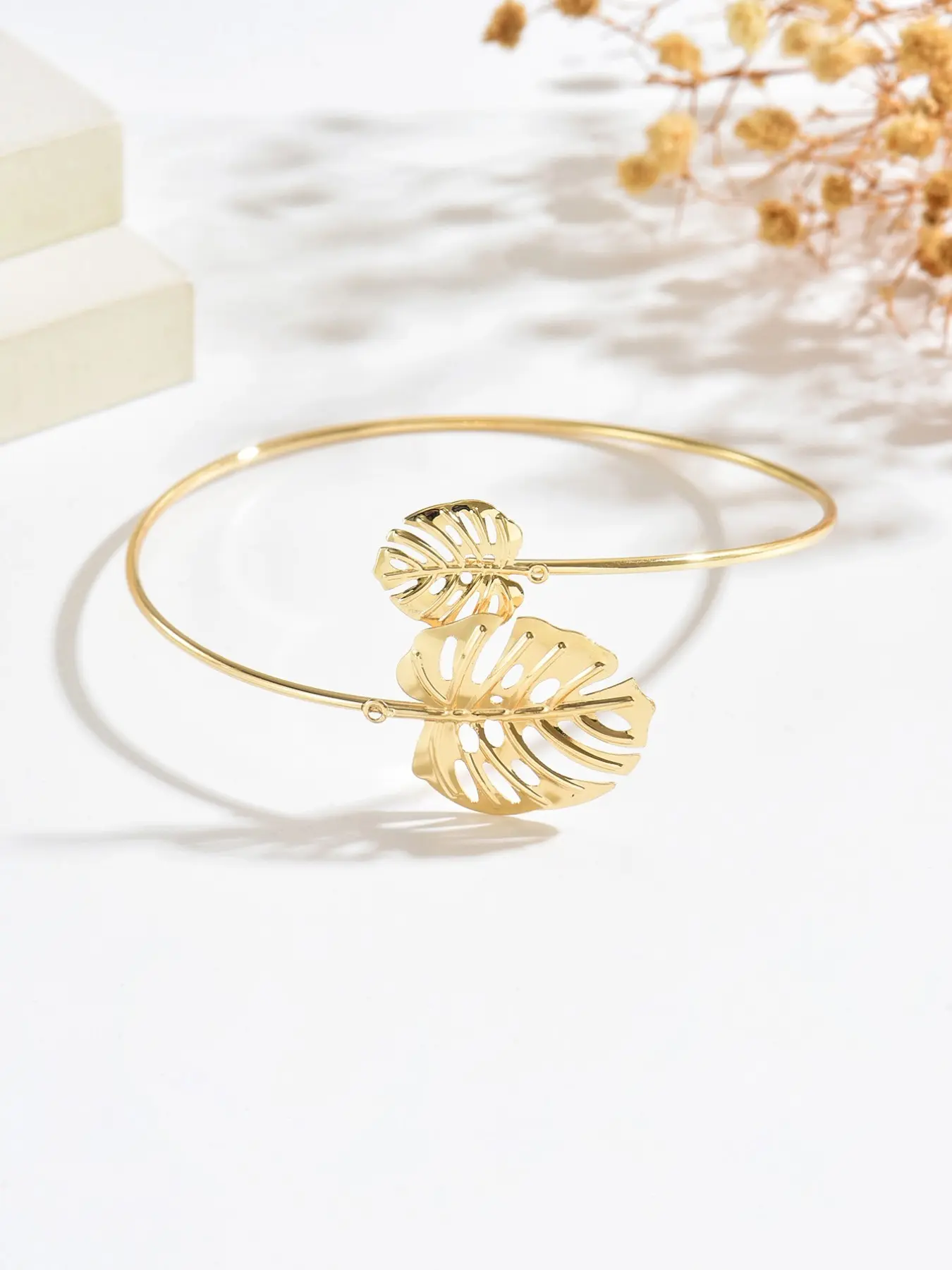 A bohemian-style, fashionable, vacation-inspired, delicately carved leaf-shaped adjustable bracelet/armband. A perfect gift for your loved one, mother, or best friend. Ideal for Valentine's Day, Mother's Day, Women's Day, or Thanksgiving.