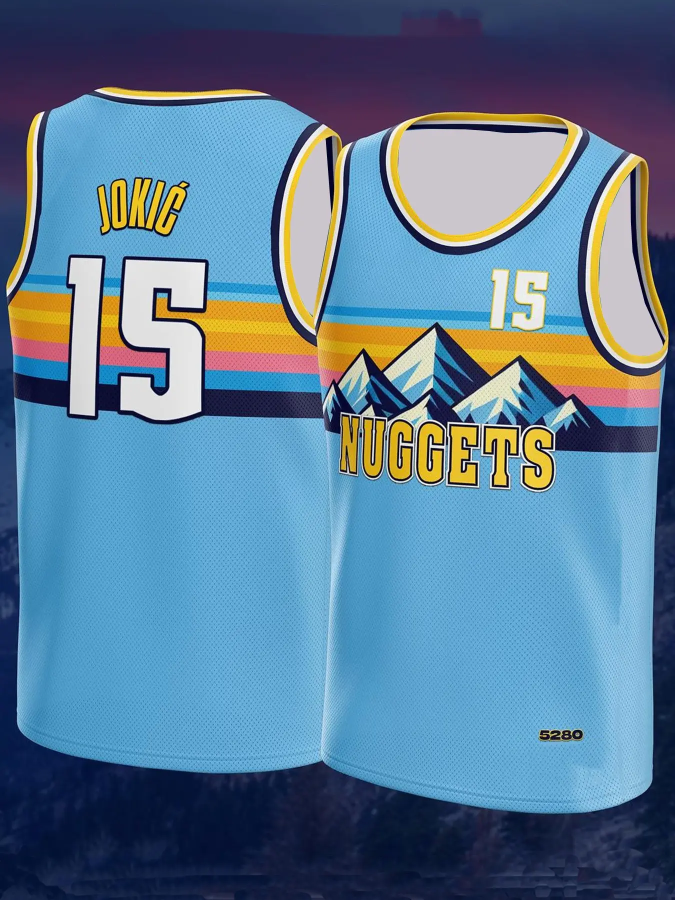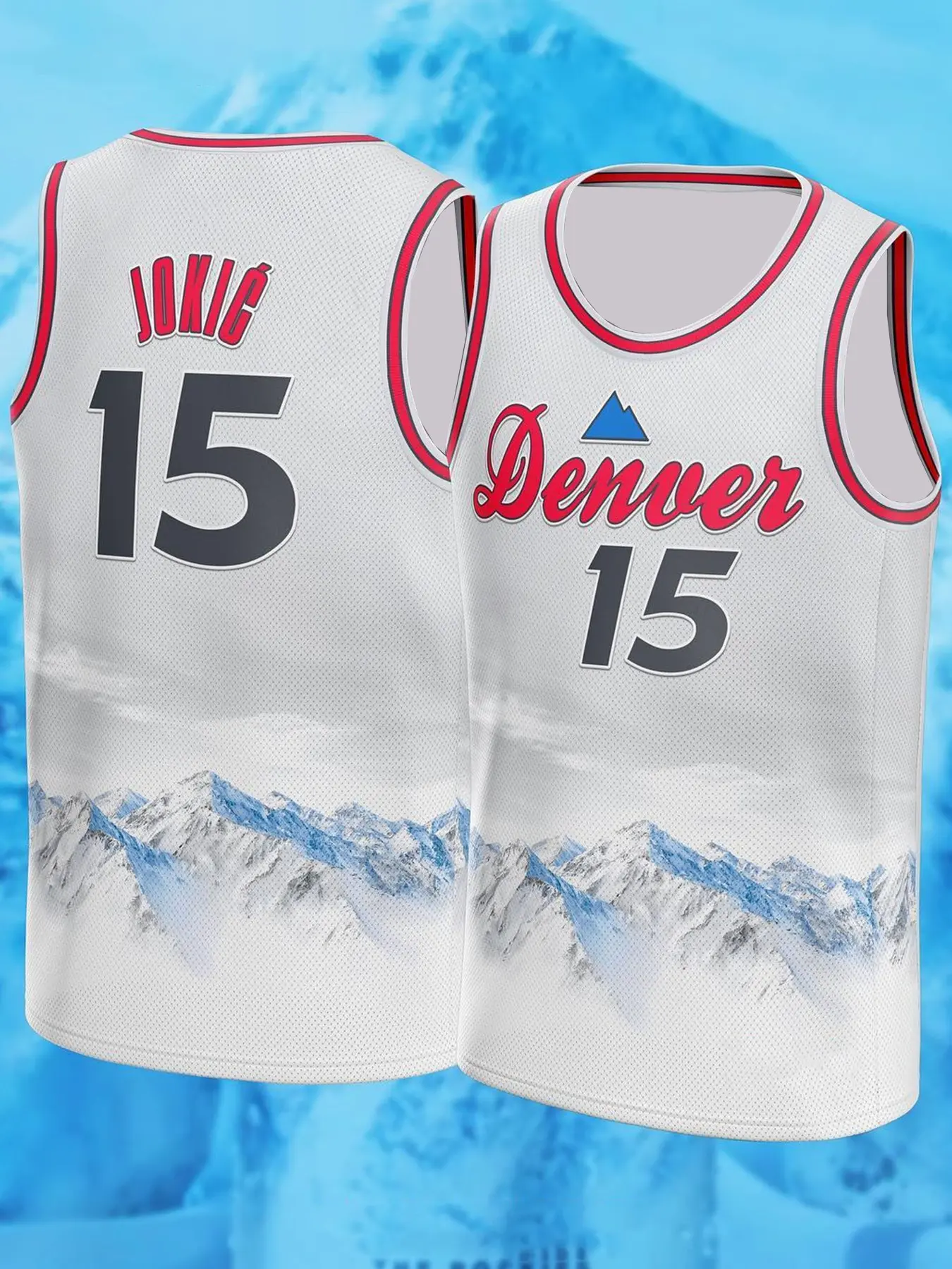 Denver Nikola Jokic #15 x South Park Collab Basketball Jersey Blue Stripe Mountain Cartoon Print Breathable Mesh Sleeveless Athletic Tank Top for Fans Jokic Supporters South Park Fans Pop Culture Collectors Jokic basketball jersey with number 15 vest