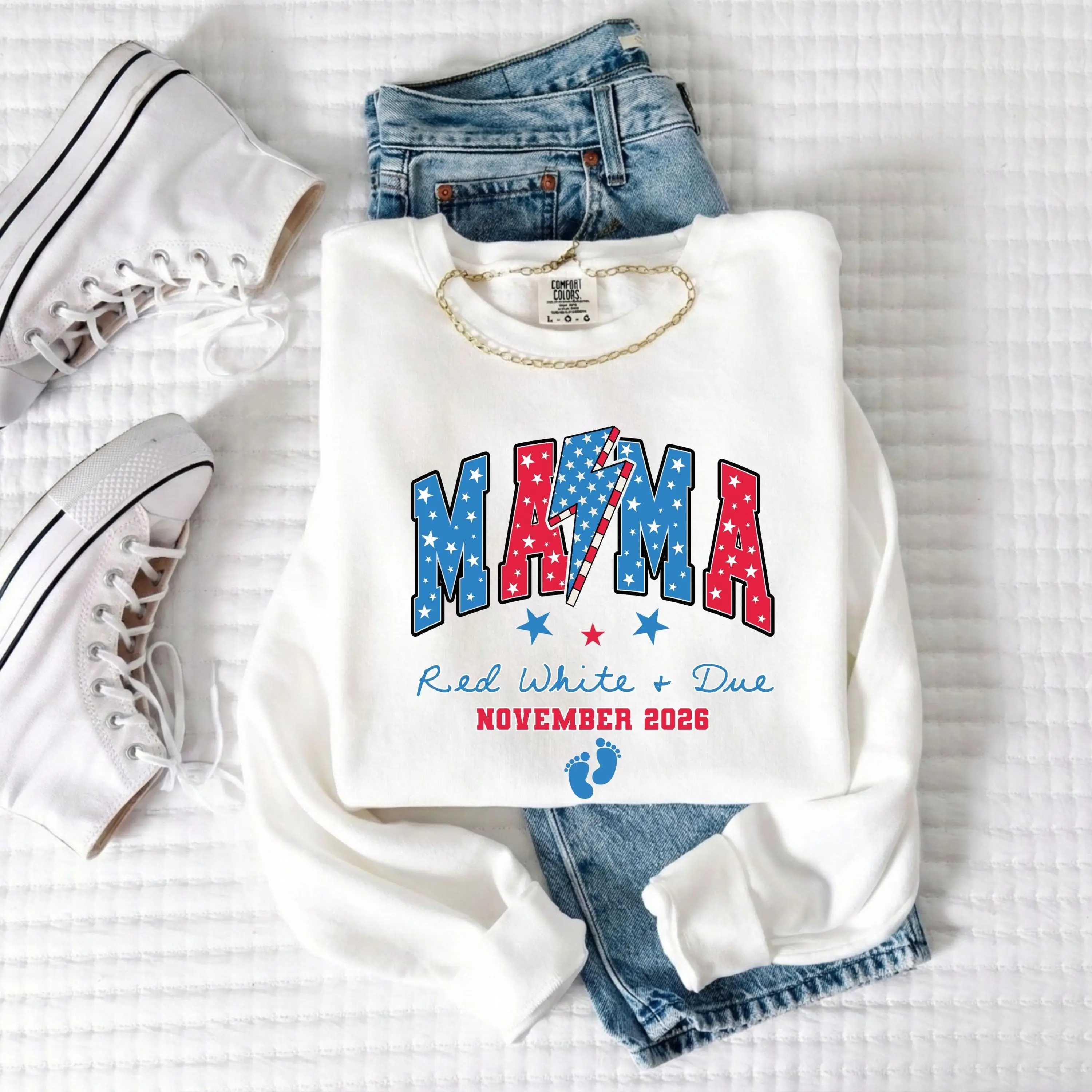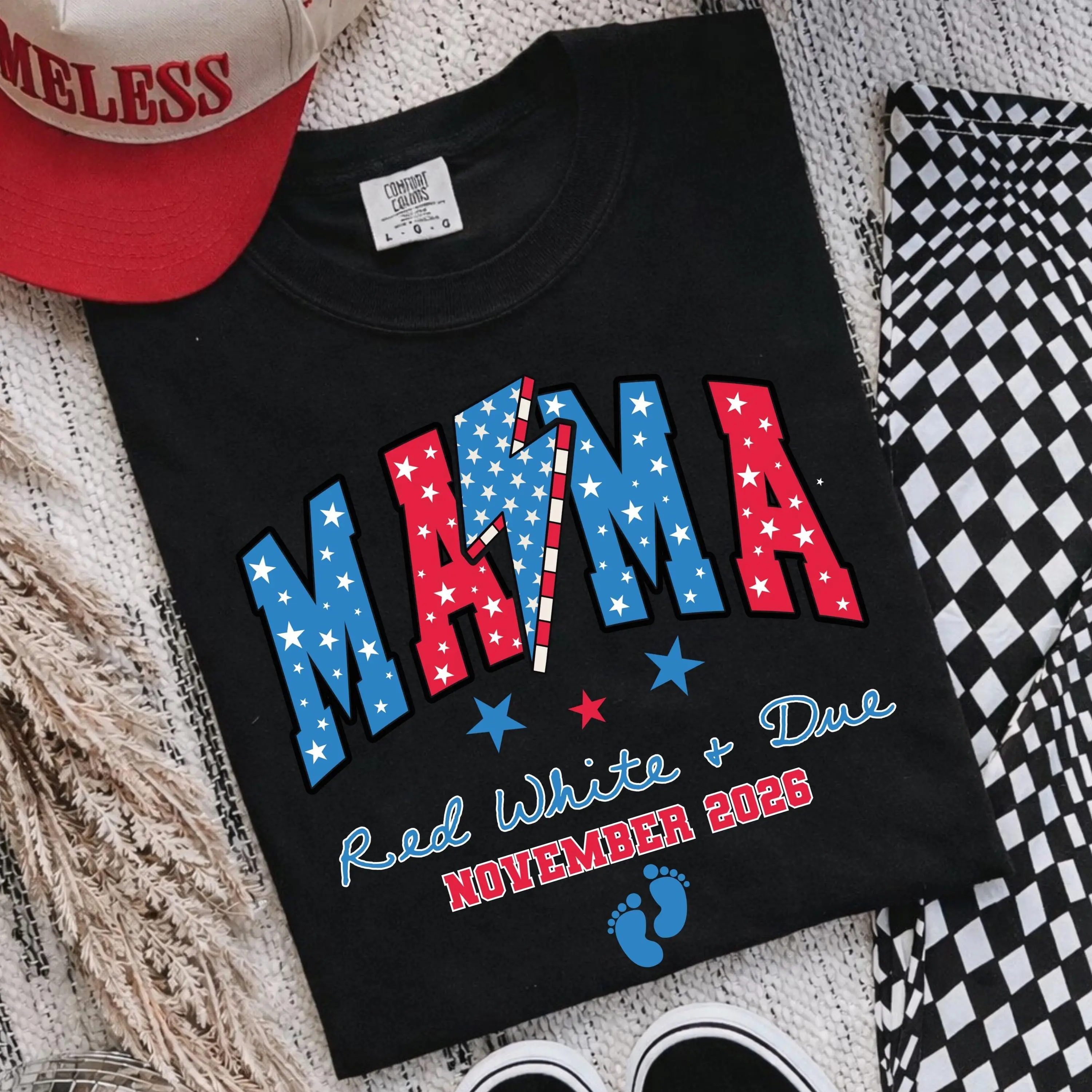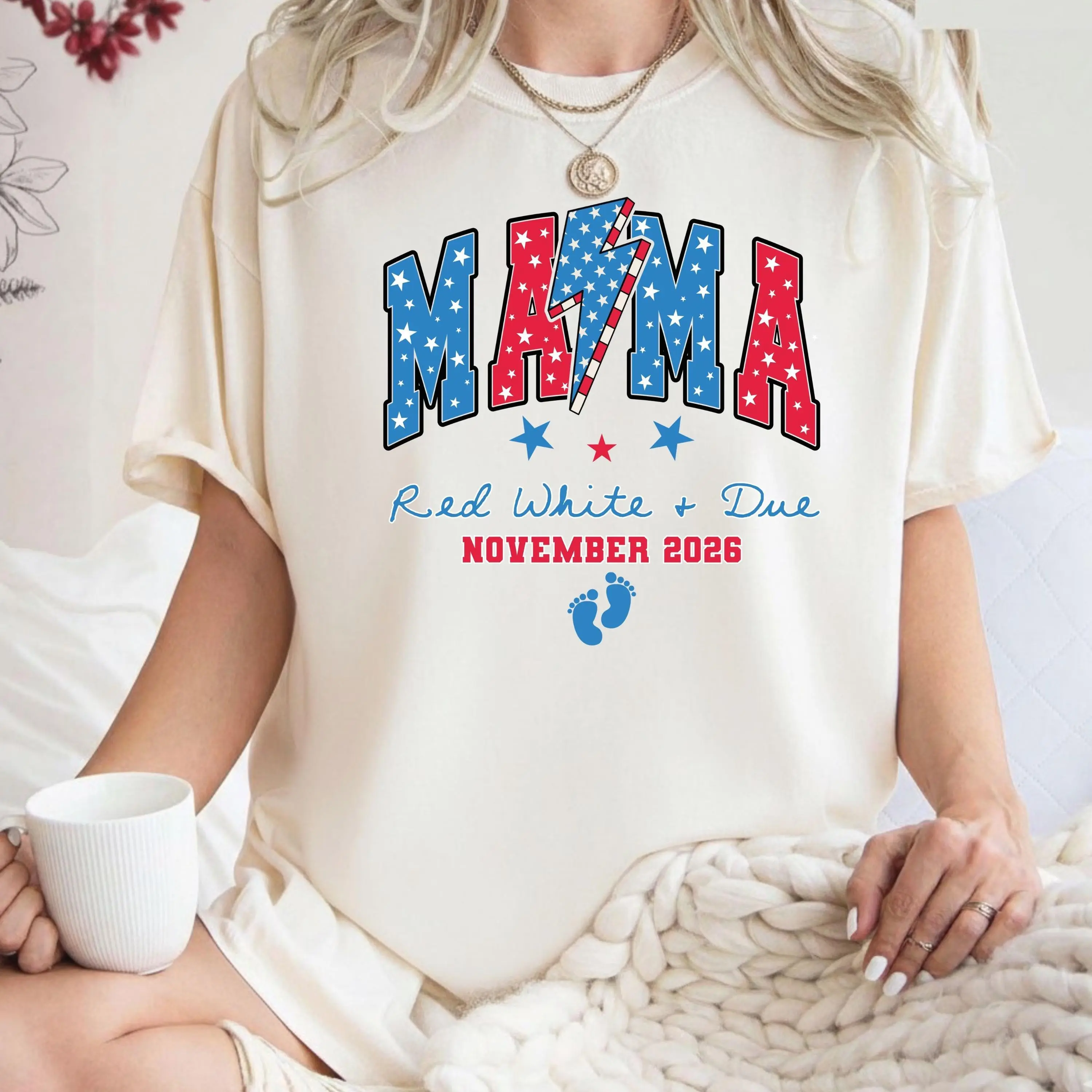 Comfort Colors® 4th Of July Pregnancy Announcement Shirt American Mama Red White And Due Patriotic Maternity Tee July Fourth Shirt For Mom To Be