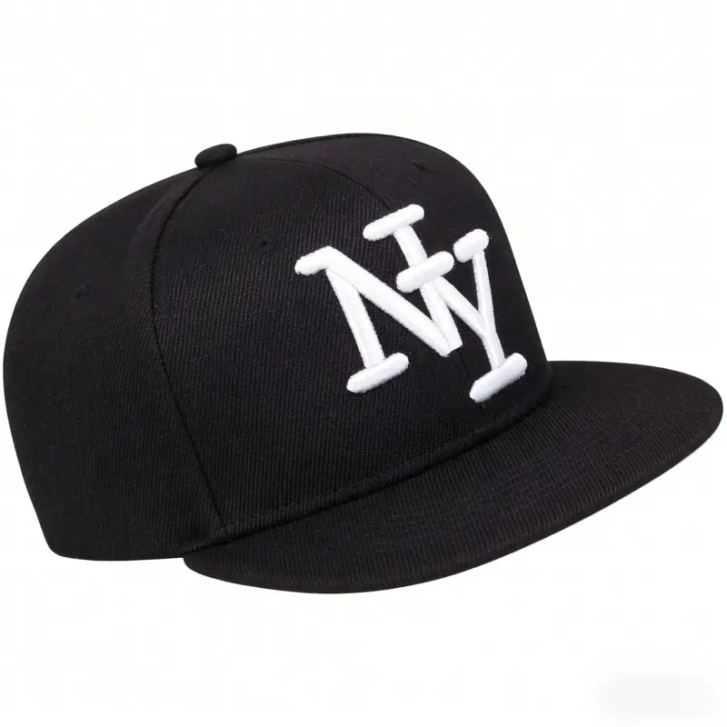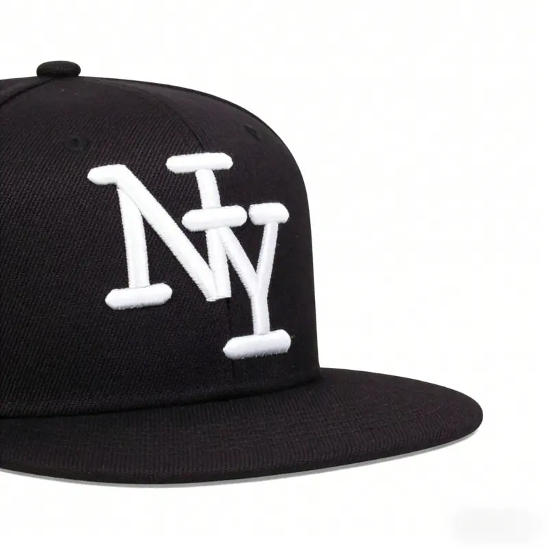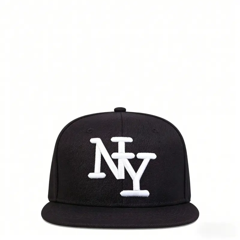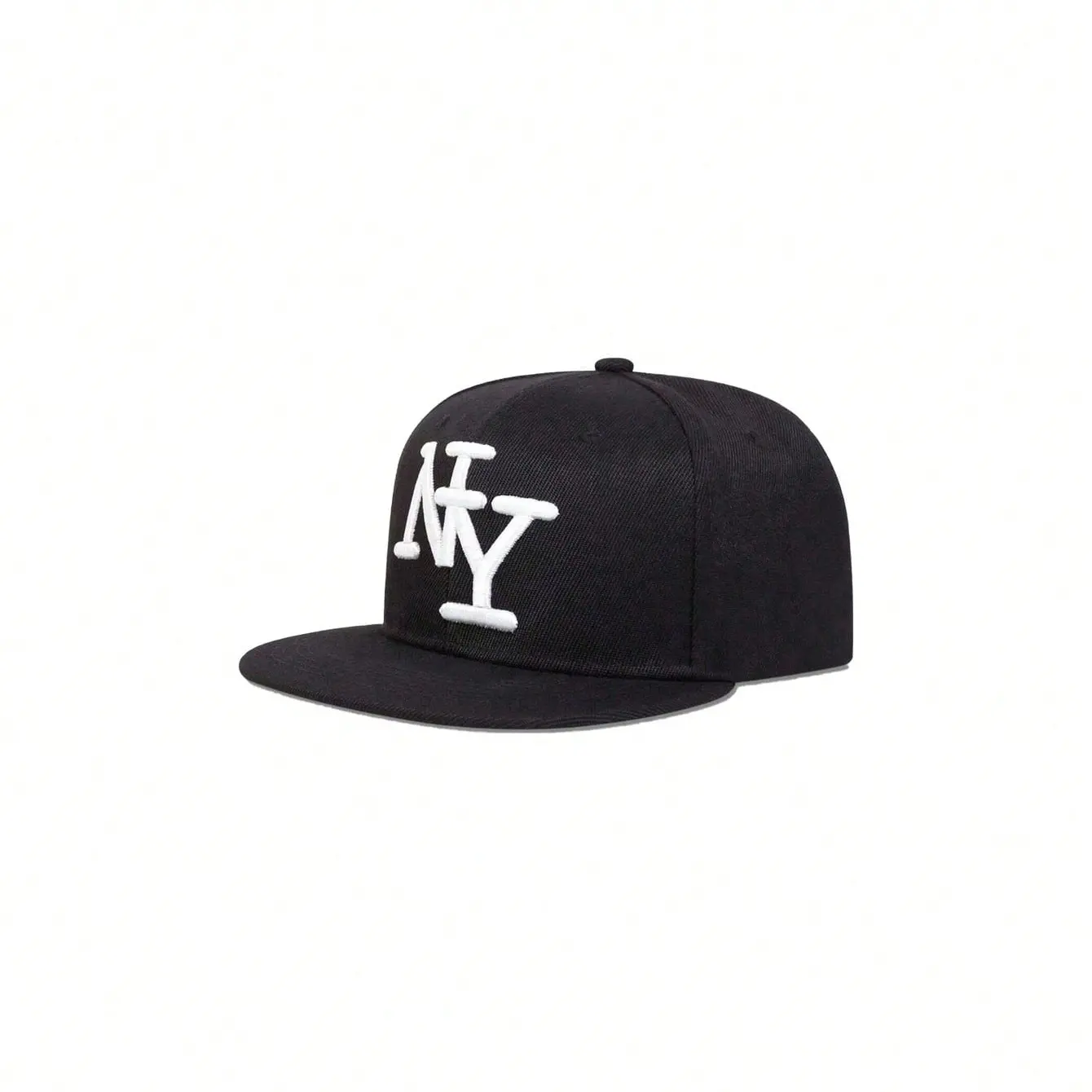 Flat-brim baseball cap with 3D NY embroidery, fully enclosed flat-brim cap, unisex, suitable for street dance, large head circumference hat