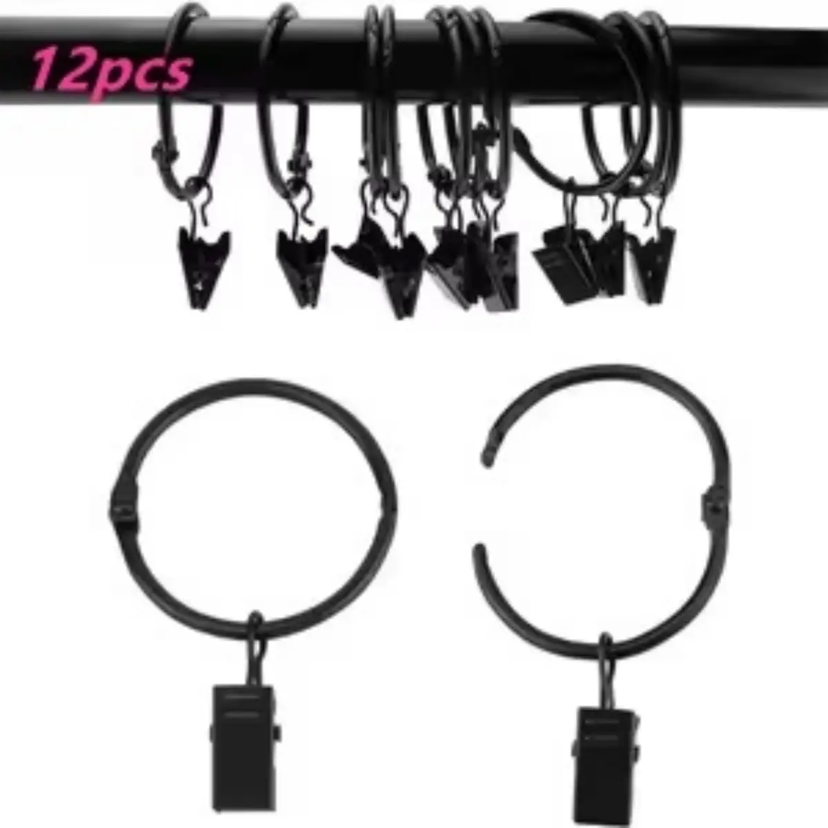 Crafted from high-quality metal with a sleek black electroplated finish, these curtain ring hooks are built to last.The rust-resistant coating ensures long-term use in humid environments like bathrooms or kitchens, while the sturdy 65mm rings and strong clips securely hold heavy blackout curtains, shower curtains, and drapes without slipping or breaking.