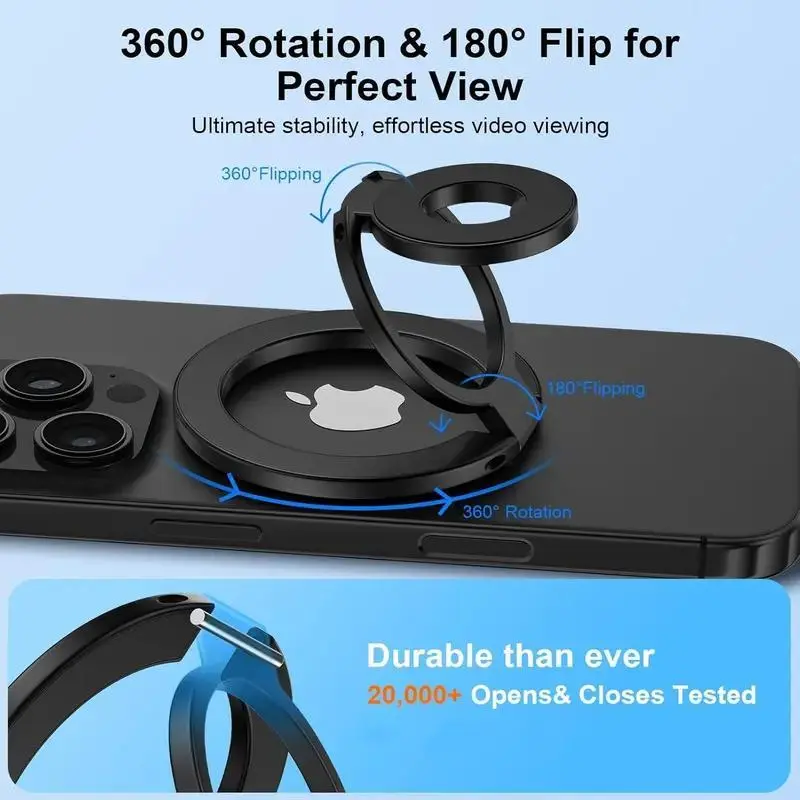 Functions as a phone grip and adjustable kickstand with full 360° rotation—perfect for gym, desk, video watching, and content creation.