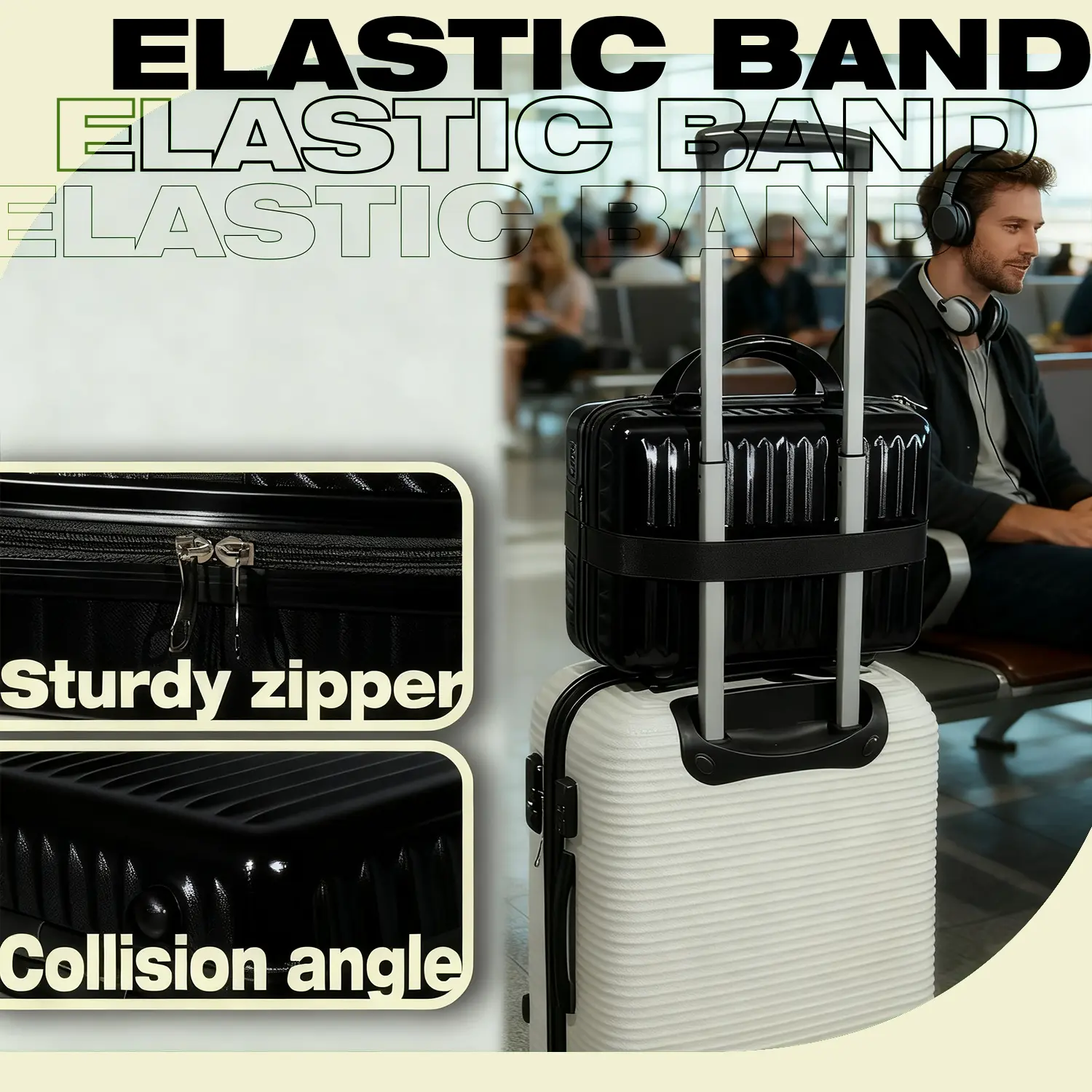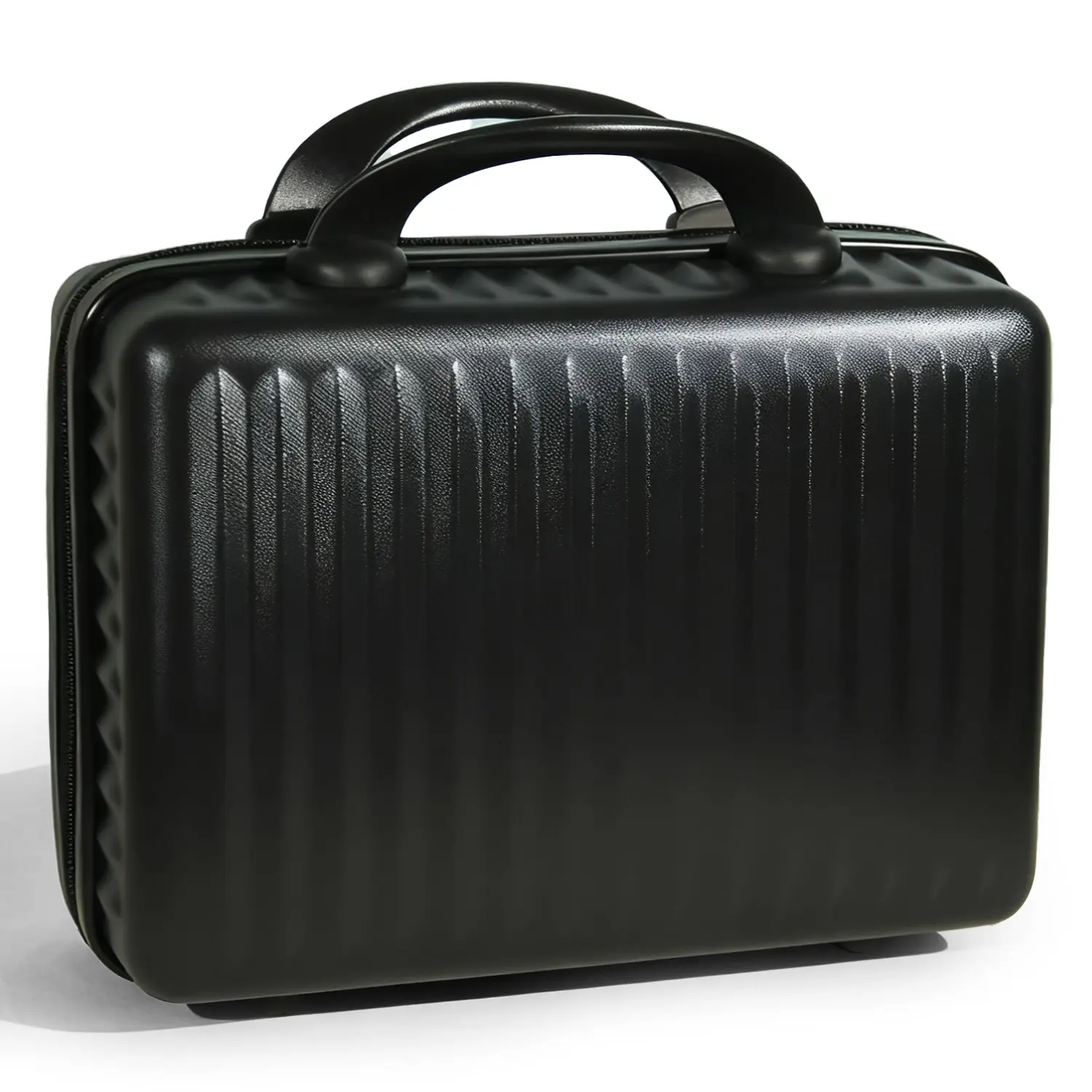 5. Black Vertical Stripe Hard Shell Makeup Case | Portable Mini Travel Cosmetic Organizer with Elastic Straps | Durable ABS Vanity Bag