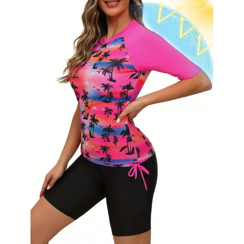 FSTVE 2026 New European and American Style Women's Two-Piece Short-Sleeve Swimsuit with Shorts TD-C202411-09