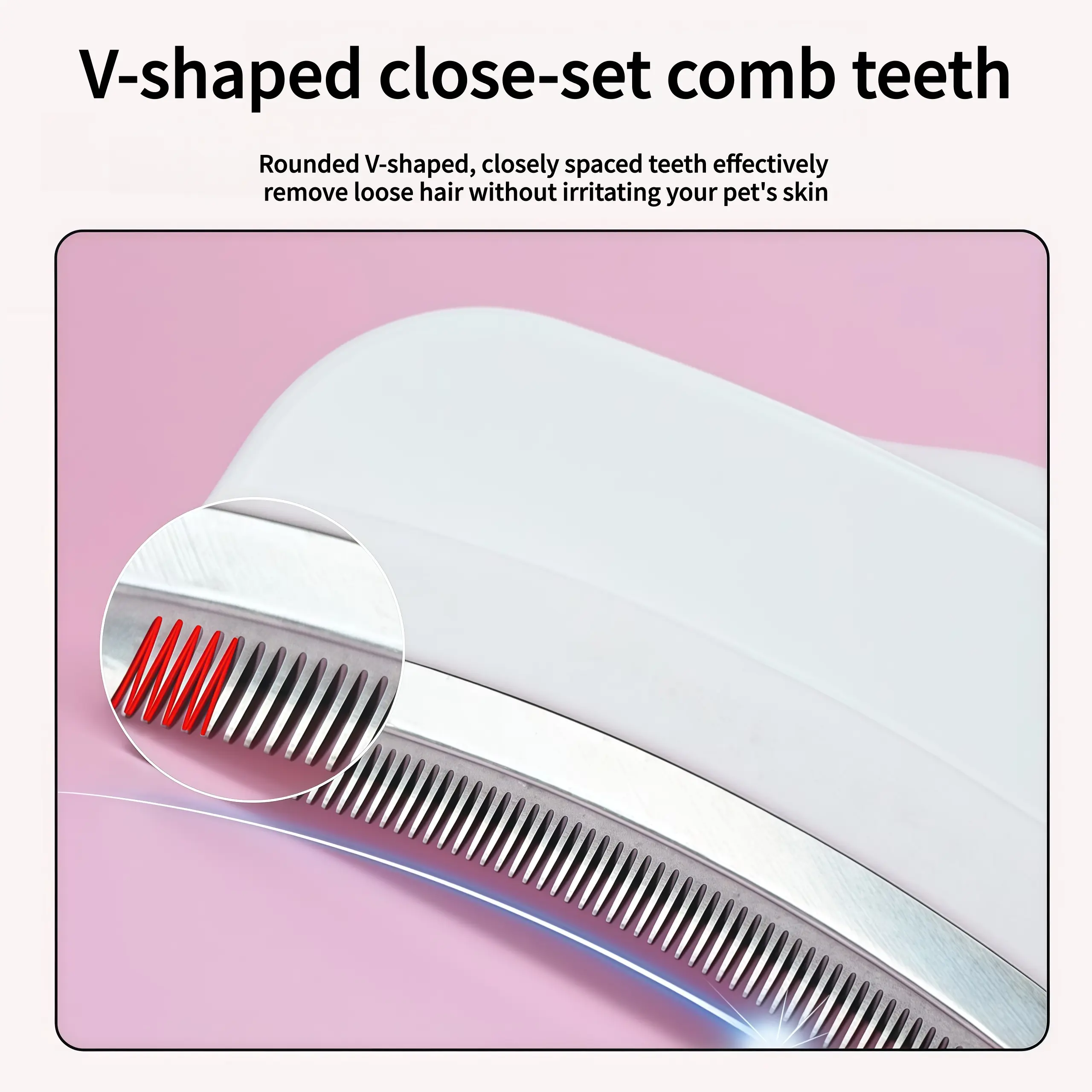 Introducing our professional Dog Deshedding Tool with Curved Blade — the ultimate V-tooth deshedding comb engineered to tackle tough mats and stubborn undercoats without pulling or causing discomfort.