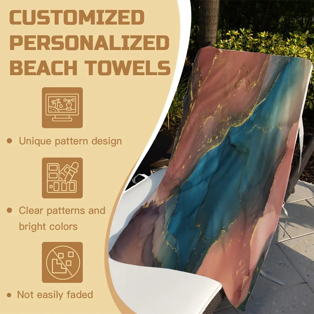 Fluid Ink Watercolor Beach Towel, Niche Artistic Design, Quick Dry Skin-friendly Lightweight Portable, Perfect for Seaside Vacation Photoshoot Daily Use