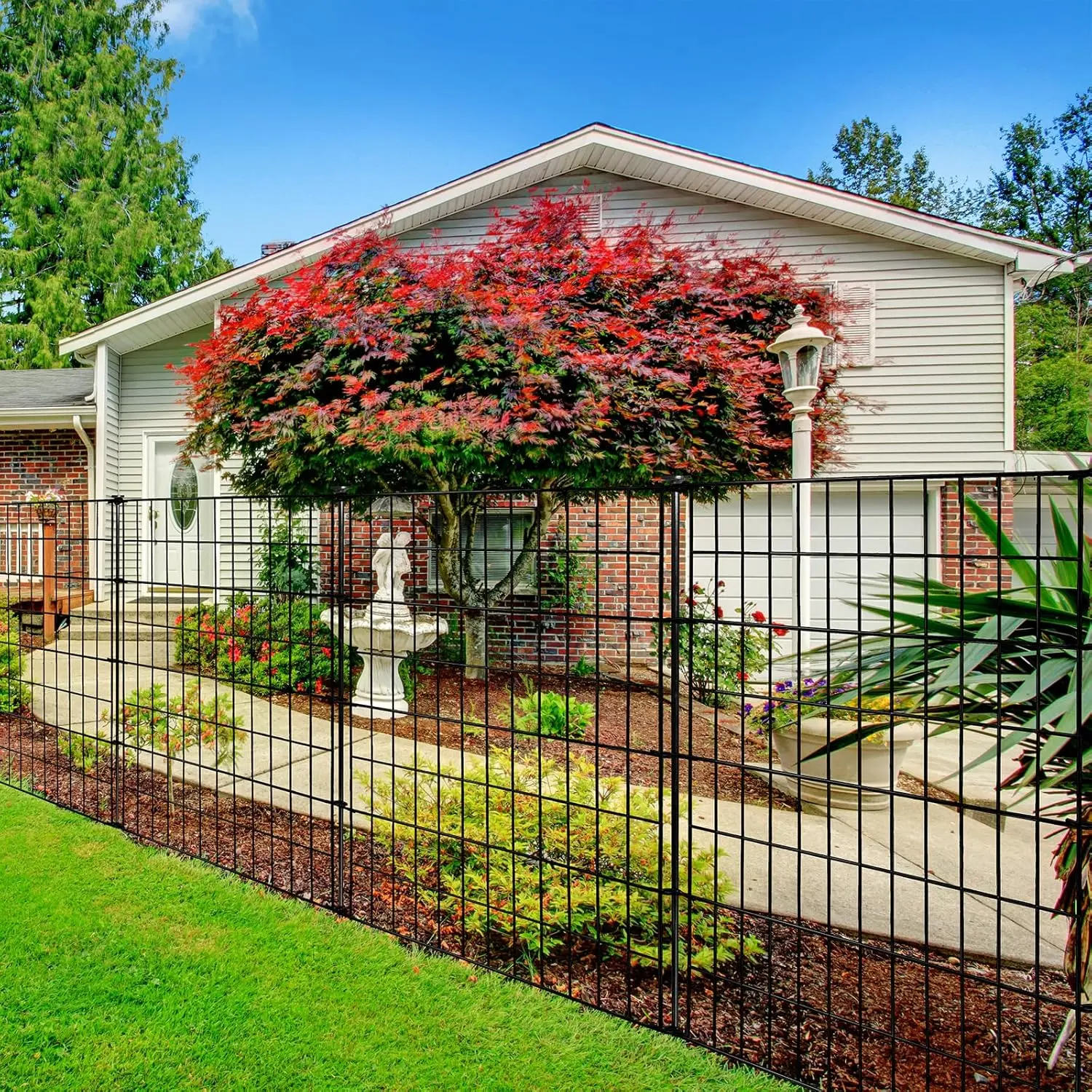 ·【Ideal for Home Fencing】This tall black metal fence can be installed in any shape, even slopes, is strong and secure, prevents intrusion, protects pets and children, is well ventilated and has an open view. Ideal for patio fencing, garden fencing, boundary fencing and dog fencing.