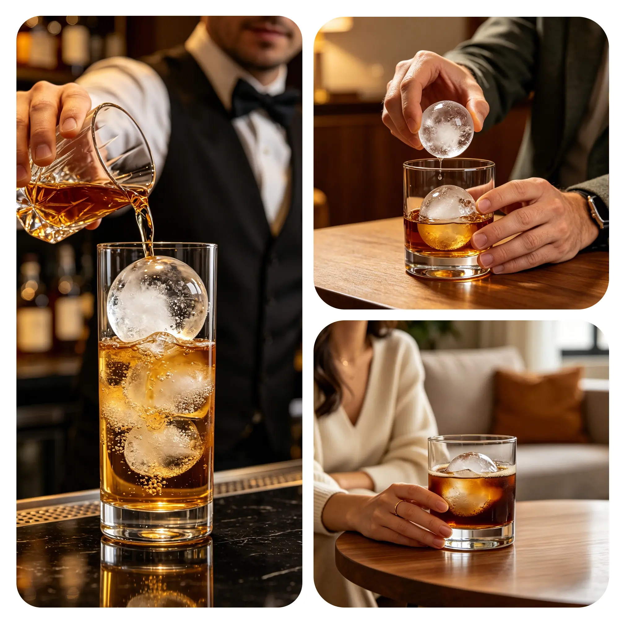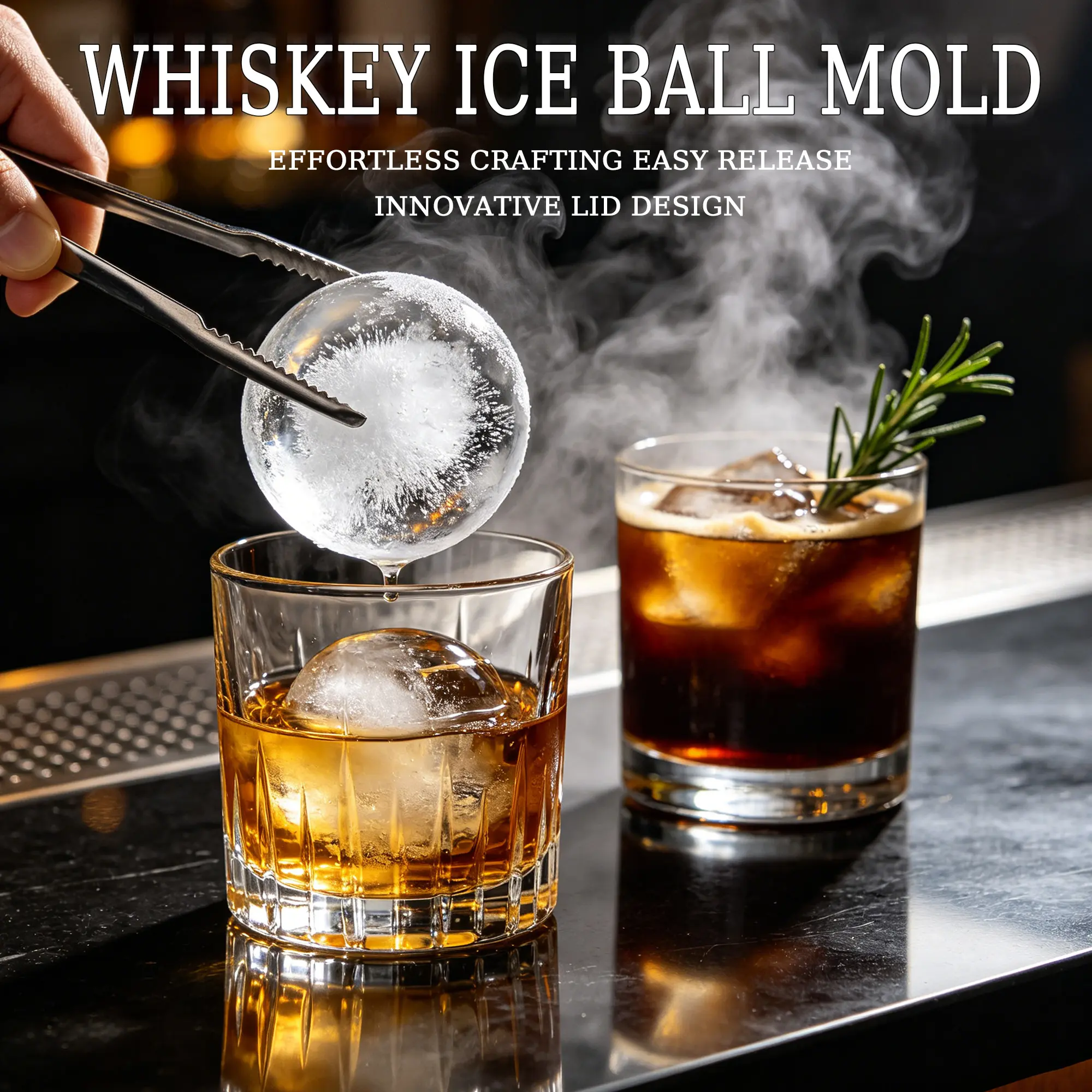 Ice Ball Molds - Set of 3, Round Ice Cube Molds, Spherical Ice Cubes for Whiskey, Cocktails, Bourbon Cocktail Ice Cube Mold
