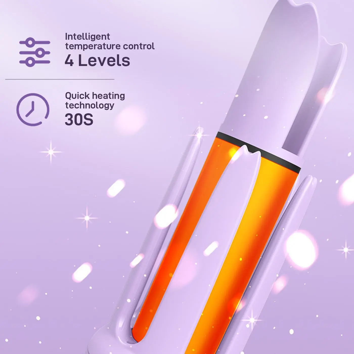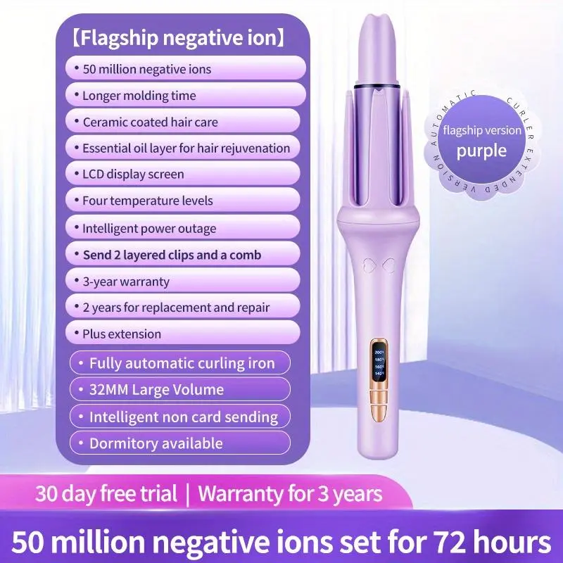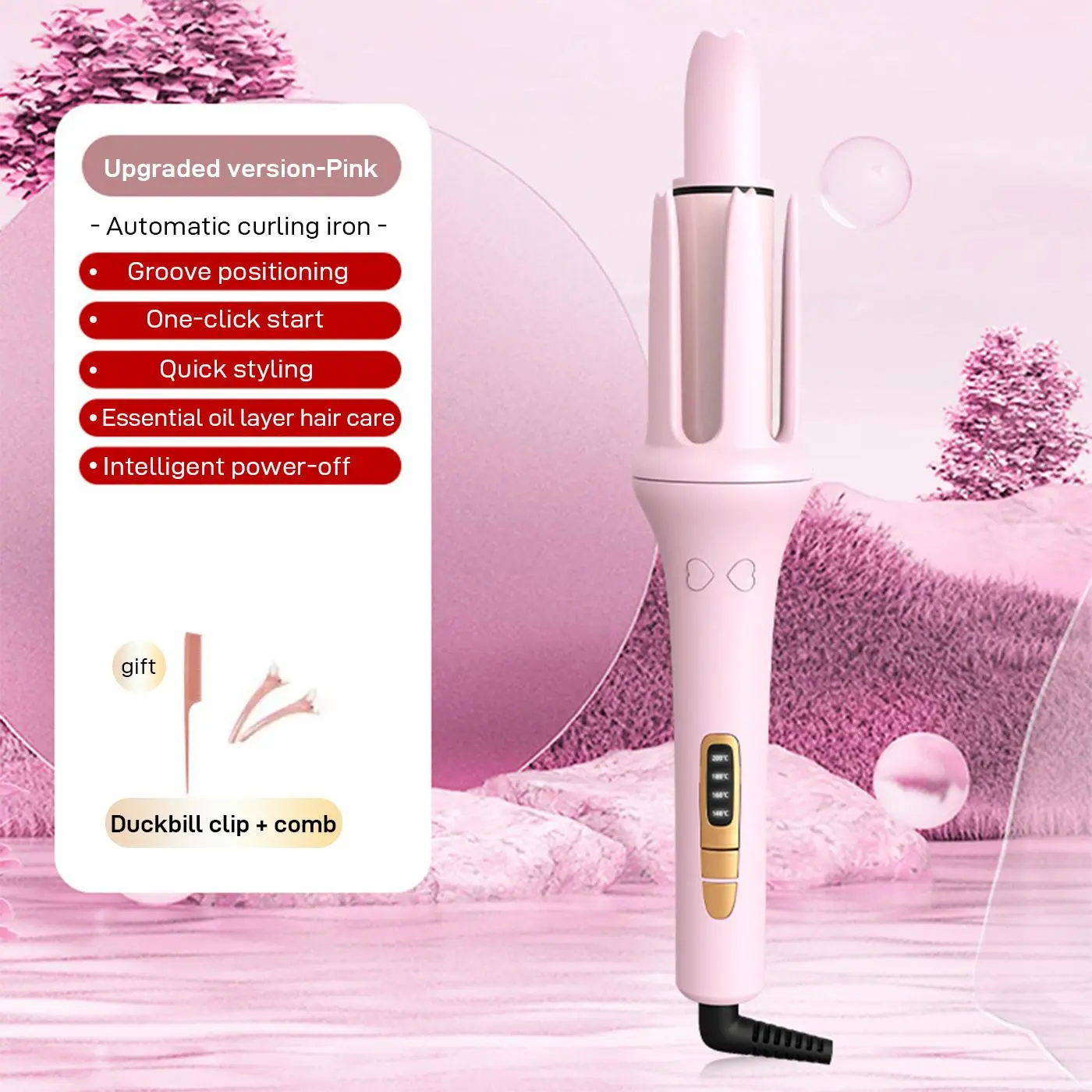 Pink/Purple 32mm(1.25in) Automatic Hair Curler Iron with LED Display - Ceramic Heating, 4 Heat Settings, Tangle-Free, Burn-Proof, 110V, French Curl Tool for Lazy People, No Hair Sticking Flawless curling irons hair curler diffuser curly hair