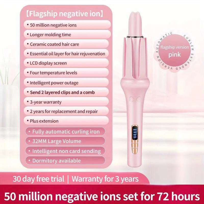 32 mm (1.25") Automatic Hair Curler – Essential Lazy Person Tools | Ionic Ceramic 4 Heat | Tangle-Free 32 mm Automatic Hair Curler with 4 Heat Settings iron curling.