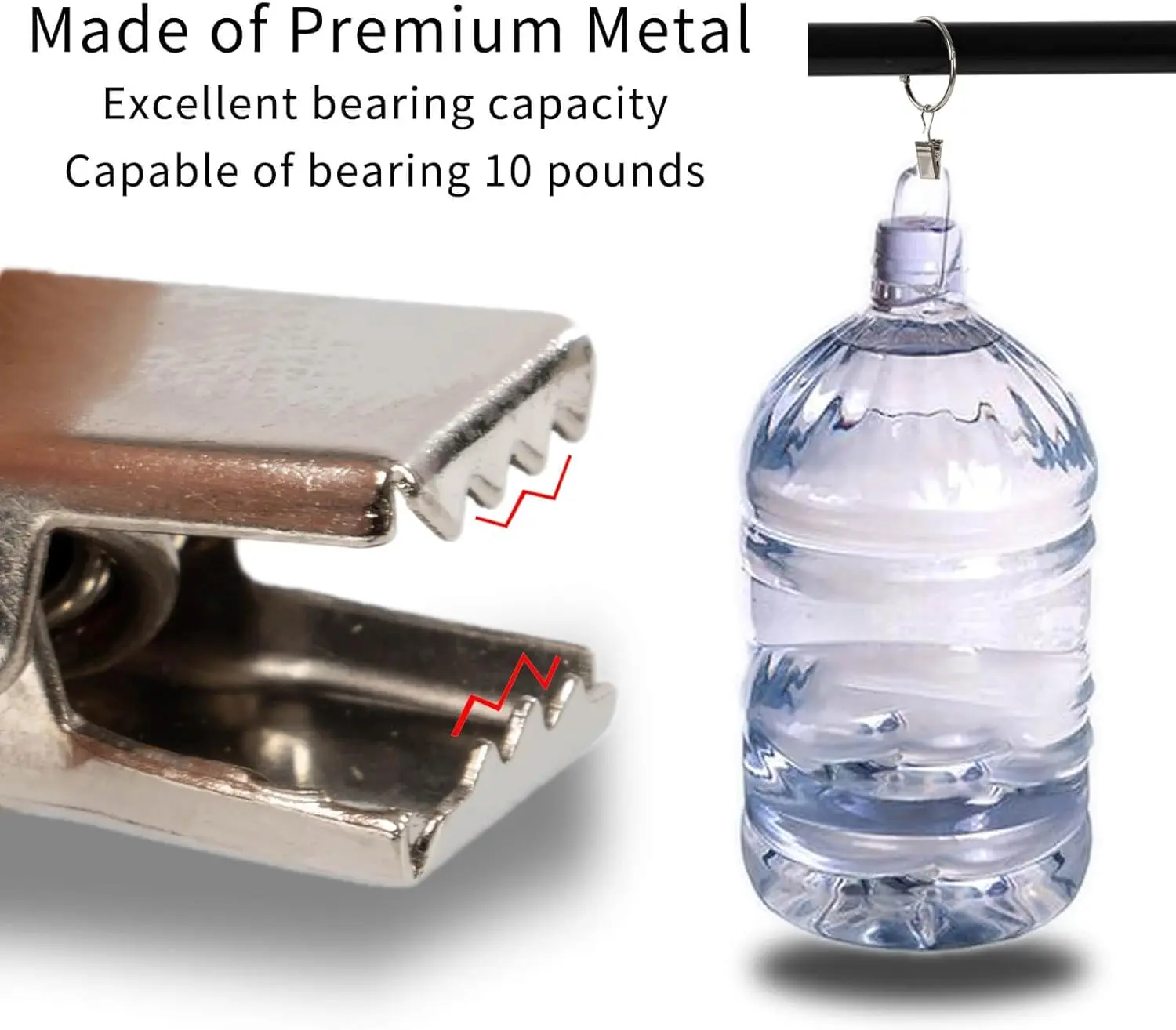 Heavy-duty metal curtain rings with a durable black finish resist rust and corrosion, so they stay looking great in bathrooms, laundry rooms, and high-humidity spaces.The super-strong clips hold thick blackout curtains, shower liners, and heavy drapes securely-no slipping, no sagging, just reliable performance.