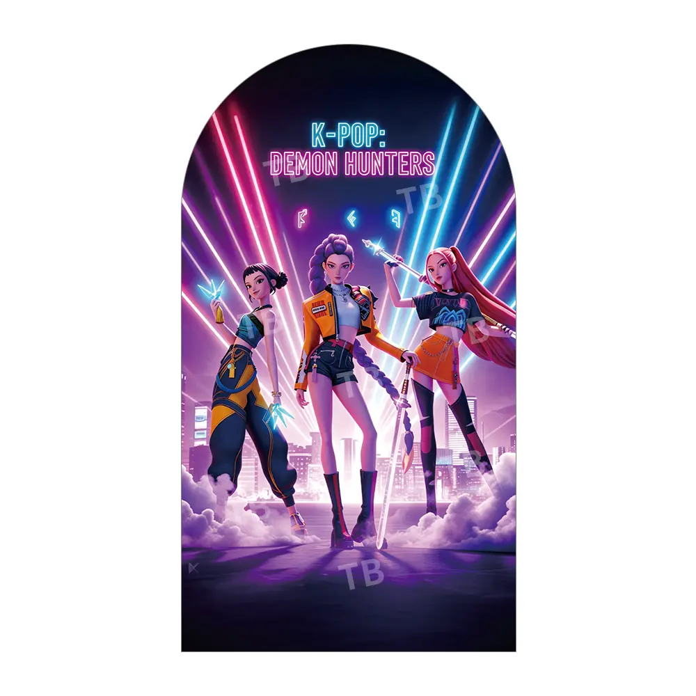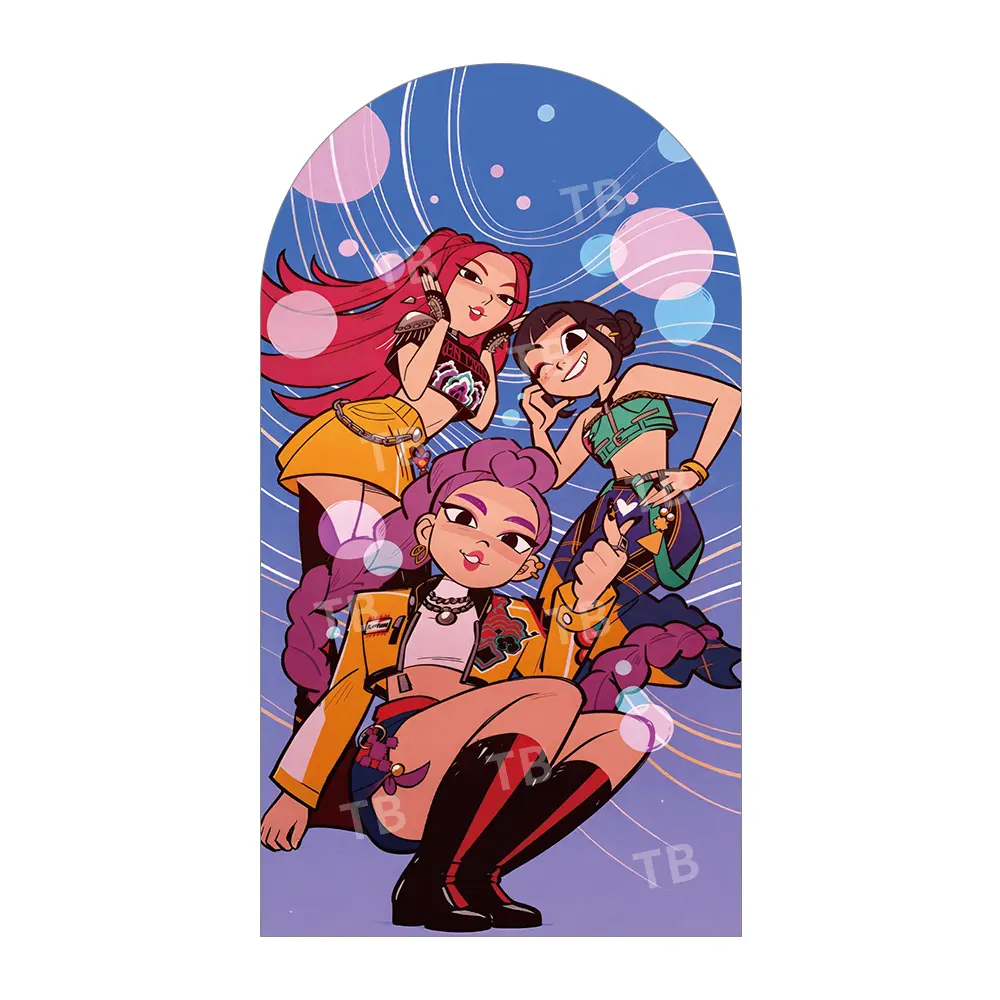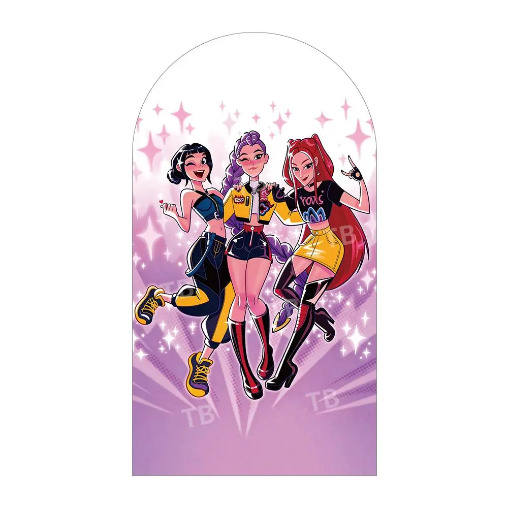 Pink Purple Neon Anime Girl Group Arch Backdrop Cover Set for Birthday Party