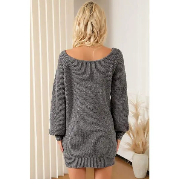 Boat Neck Long Sleeve Sweater Dress