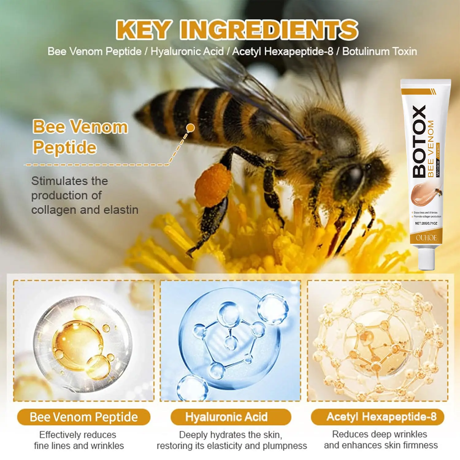 Firming and anti-wrinkle: Bee venom anti-wrinkle cream focuses on improving skin firmness, improving natural barriers, enhancing self-repair, reducing fine lines and wrinkles, and rejuvenating youthful firmness and healthy radiance.