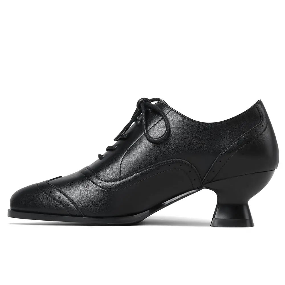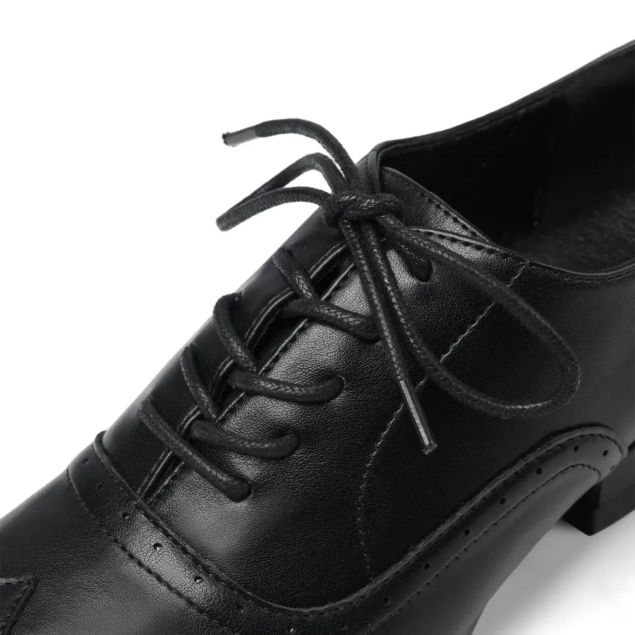 ·Oxford silhouette; rounded toe