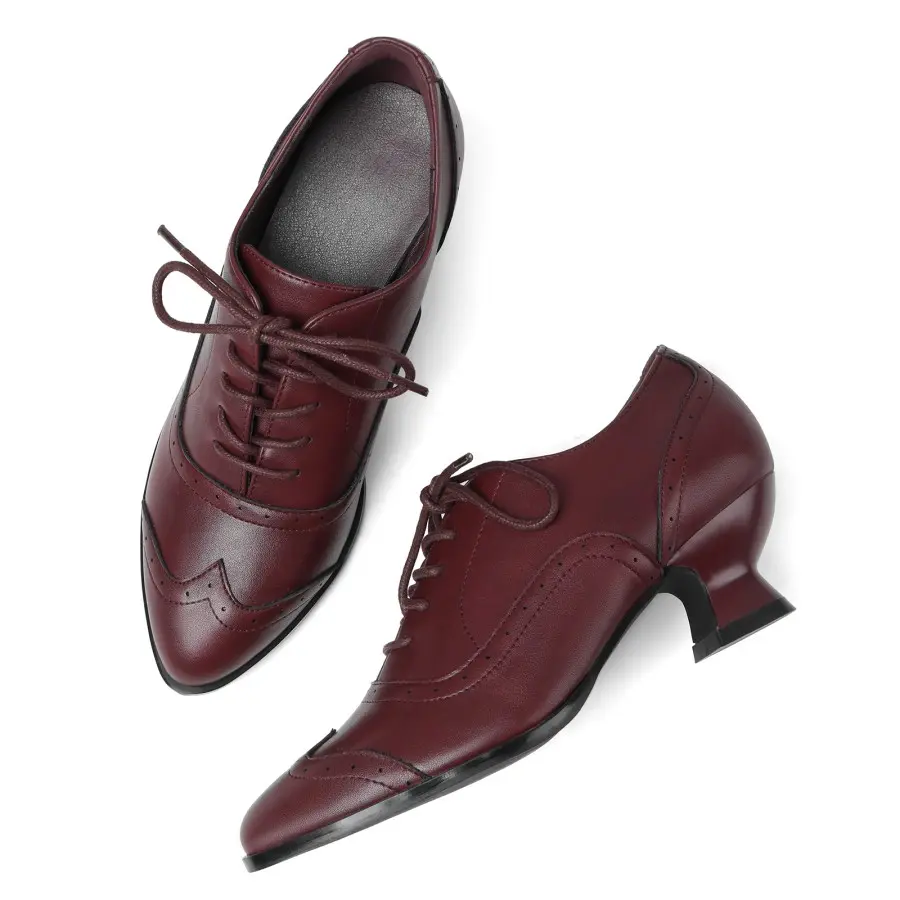 ·Retro brogue stitch pattern; polished leather construction