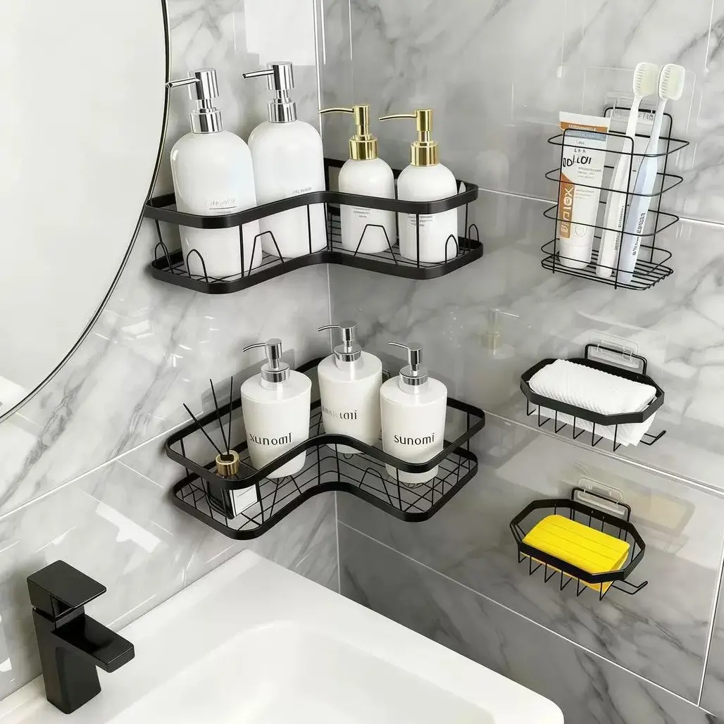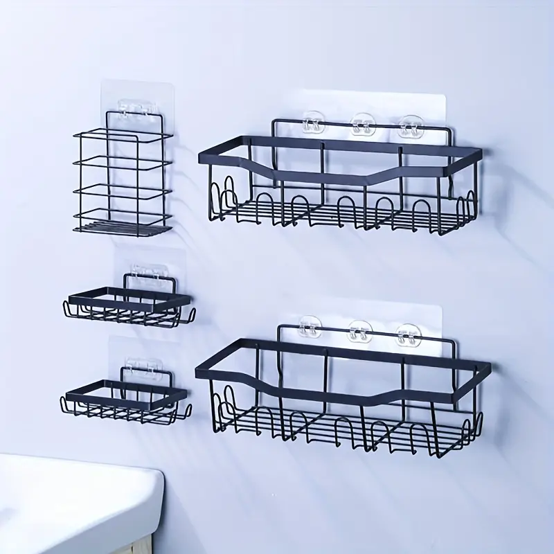 Heavy Duty Rack 5-Piece No Drill Kitchen Bathroom Wall refrigerator Shelf Set,Rustproof Wall Mounted Storage Organizer Rack for Spices,Utensils,Jars and Cooking Supplies,Space Saving Hanging Shelving,Easy Installation No Nails Needed