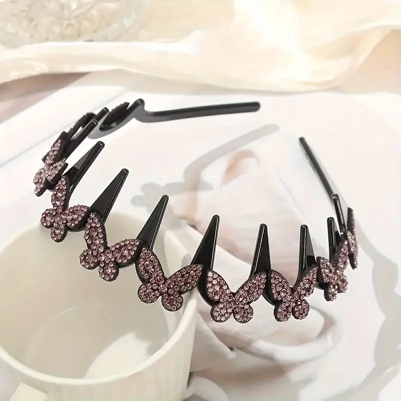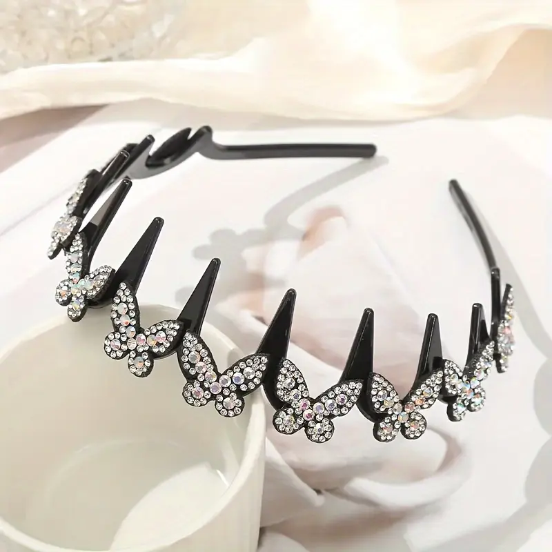 DB- Elegant Wavy Headband for Women, Non-Slip Butterfly Crystal Hairband, Lightweight Durable Plastic Head Accessory for Everyday Wear, Weddings, Parties & Year-Round Styling SpringStatements-DB