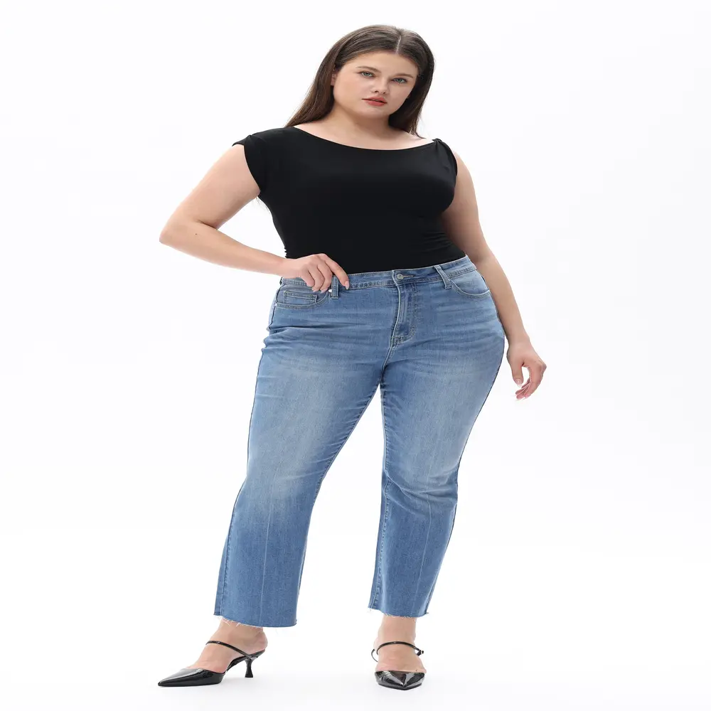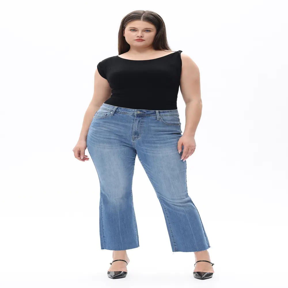 Retro Light Wash Flare Jeans for Curvy Women, Perfect High Waisted Bootcut Denim | Must-Have Streetwear
