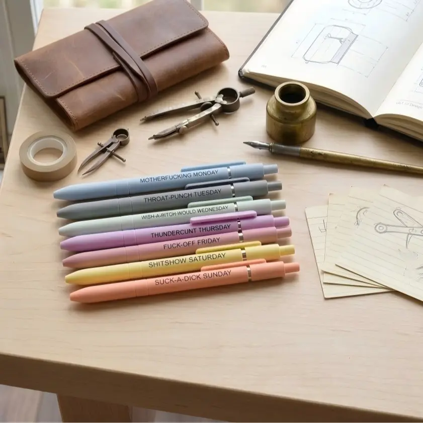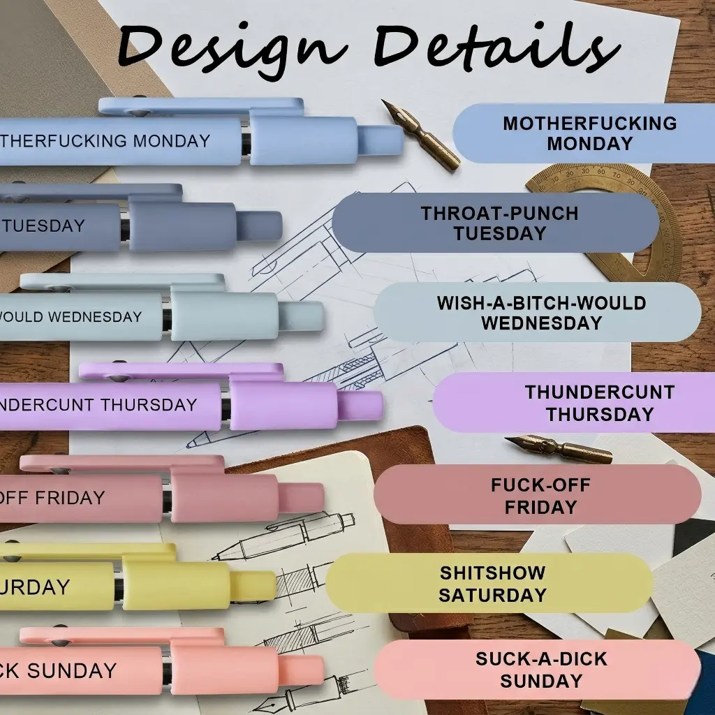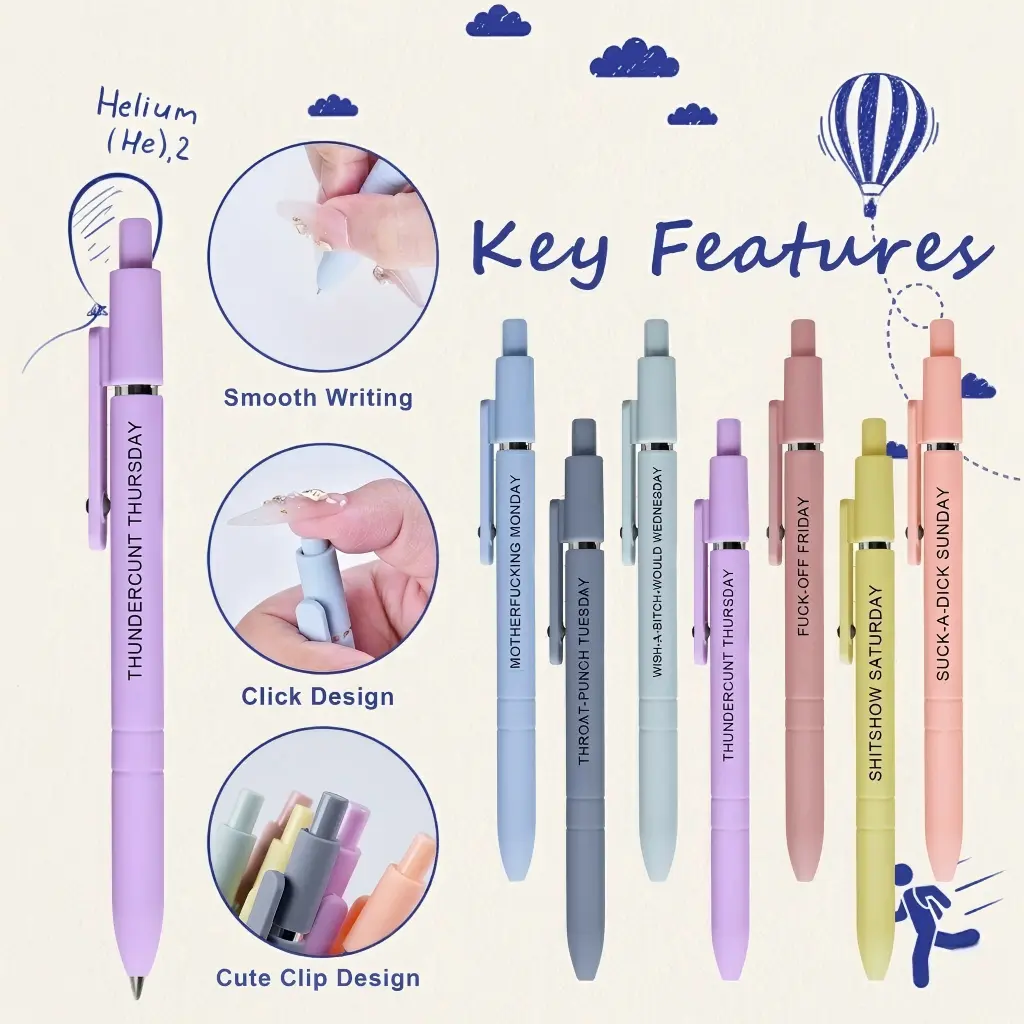 Sarcastic Daily Quote Pens (Set of 7) | Smooth Rainbow Gel Ink, Quick-Drying Novelty Pens for Office Decor & Gifts