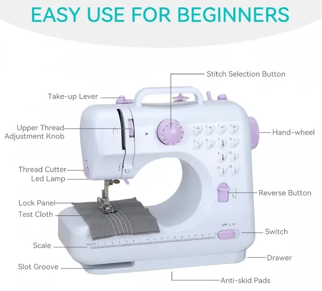This compact, lightweight sewing machine is perfect for home DIY and daily crafting. It's easy to carry and ideal for quick stitching. With 12 built-in stitches and dual speed, it handles various fabrics effortlessly. Ideal for beginners, kids, and DIY enthusiasts.