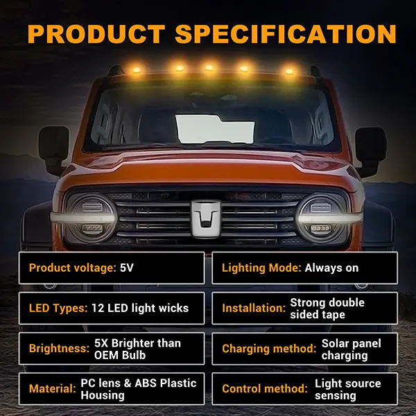 ·High-Intensity Illumination: Each solar cab light for trucks features 12 ultra-bright LEDs, delivering optimal visibility for nighttime driving or worksite tasks. With 5 lights included, this setup ensures wide, consistent coverage.