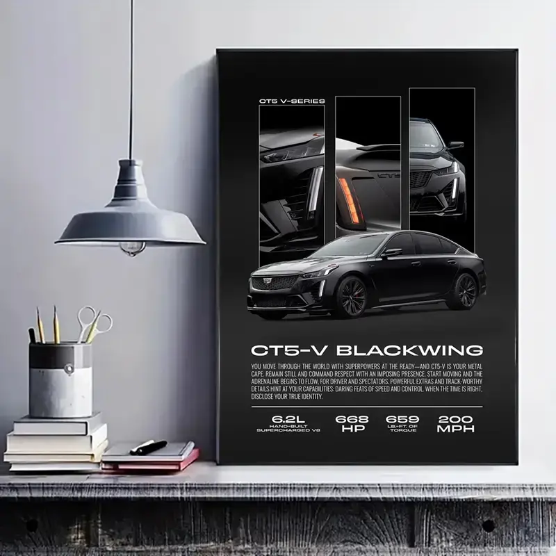 5. Cadillac CT5-V Blackwing Car Enthusiast Canvas Wall Art Poster, Premium Unframed High-Definition Print for Garage Office Home Decor, Luxury Supercharged V8 Sport Sedan Artwork, Unique Gift for Men