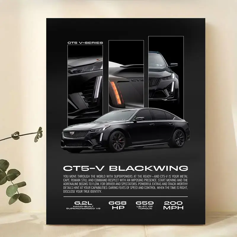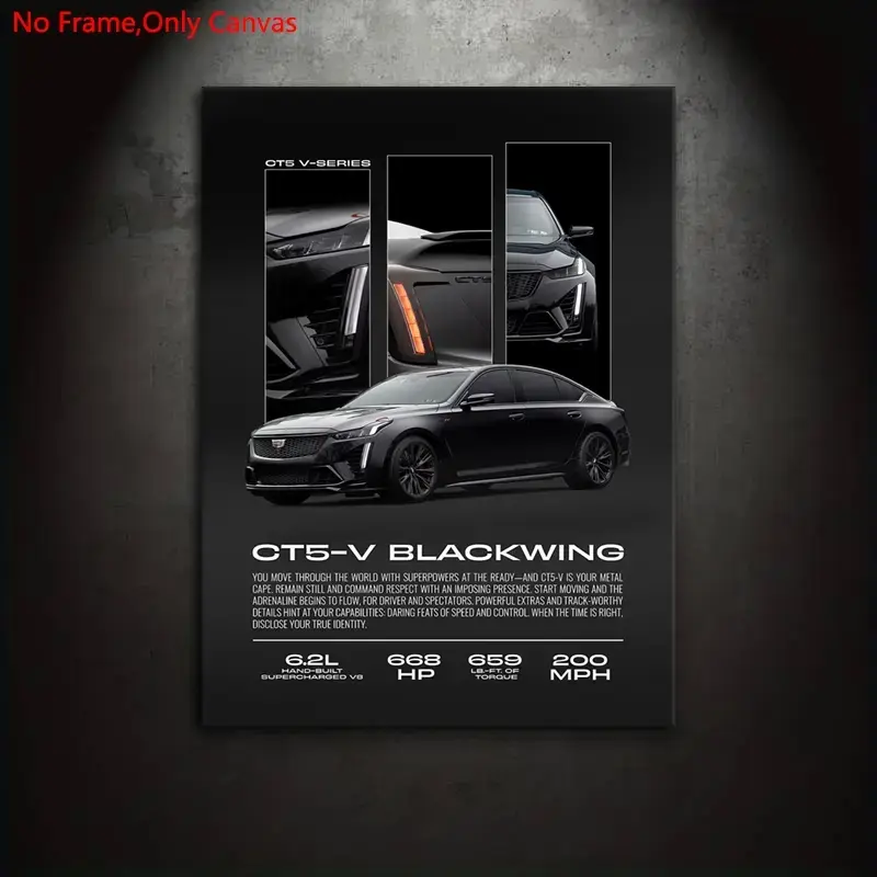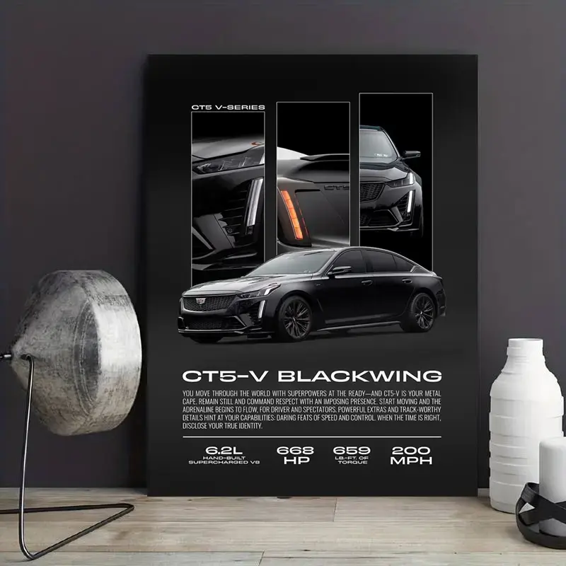 Cadillac CT5-V Blackwing Car Enthusiast Canvas Wall Art Poster, Premium Unframed High-Definition Print for Garage Office Home Decor, Luxury Supercharged V8 Sport Sedan Artwork, Unique Gift for Men