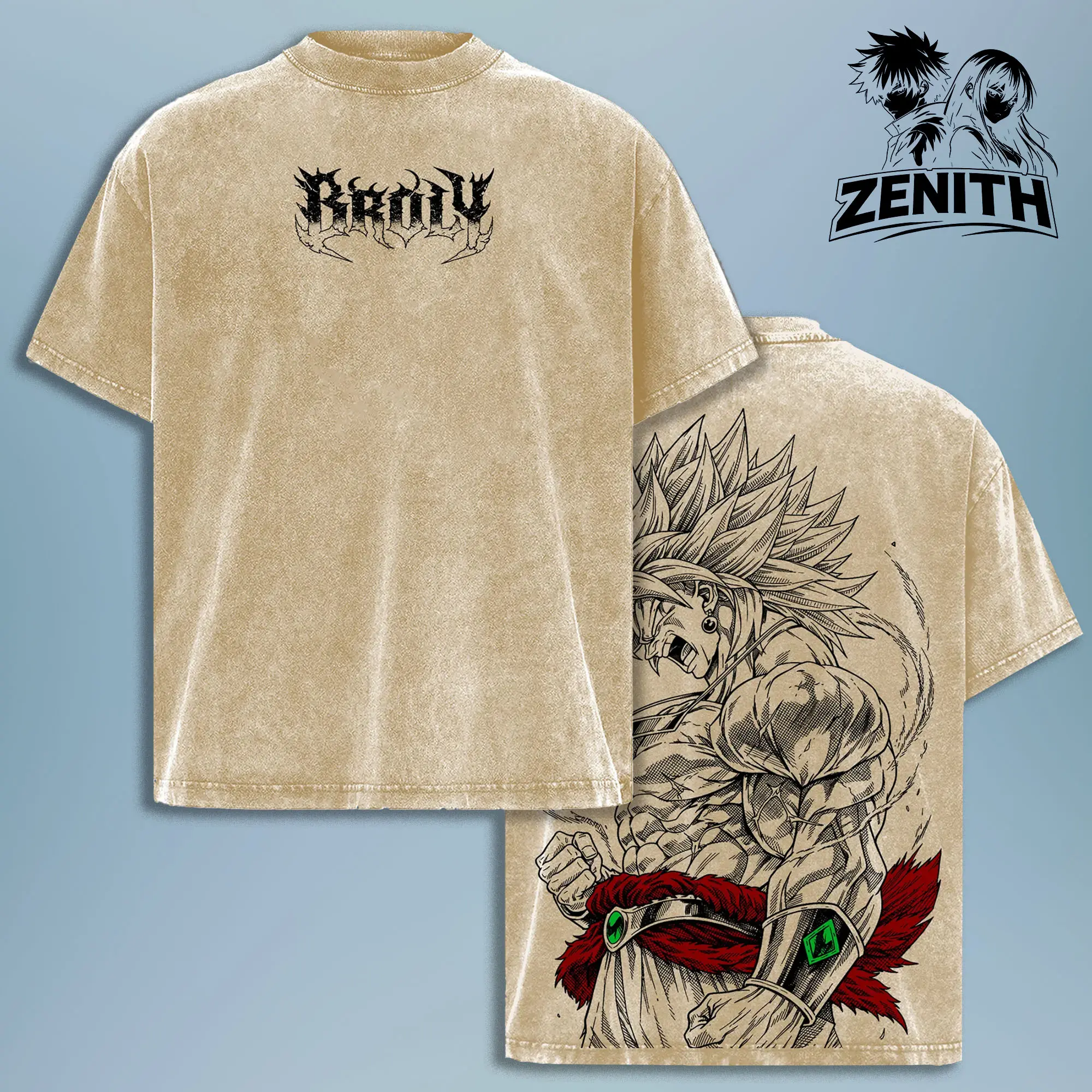 Broly Legendary Super Saiyan Vintage Washed T-Shirt – Dragon Ball Z DBZ Anime Streetwear Graphic Tee, Oversized Distressed Heavyweight Cotton Shirt, Broly Rage Gym Pump Cover, Harajuku Manga Style, Viral TikTok Anime Tee
