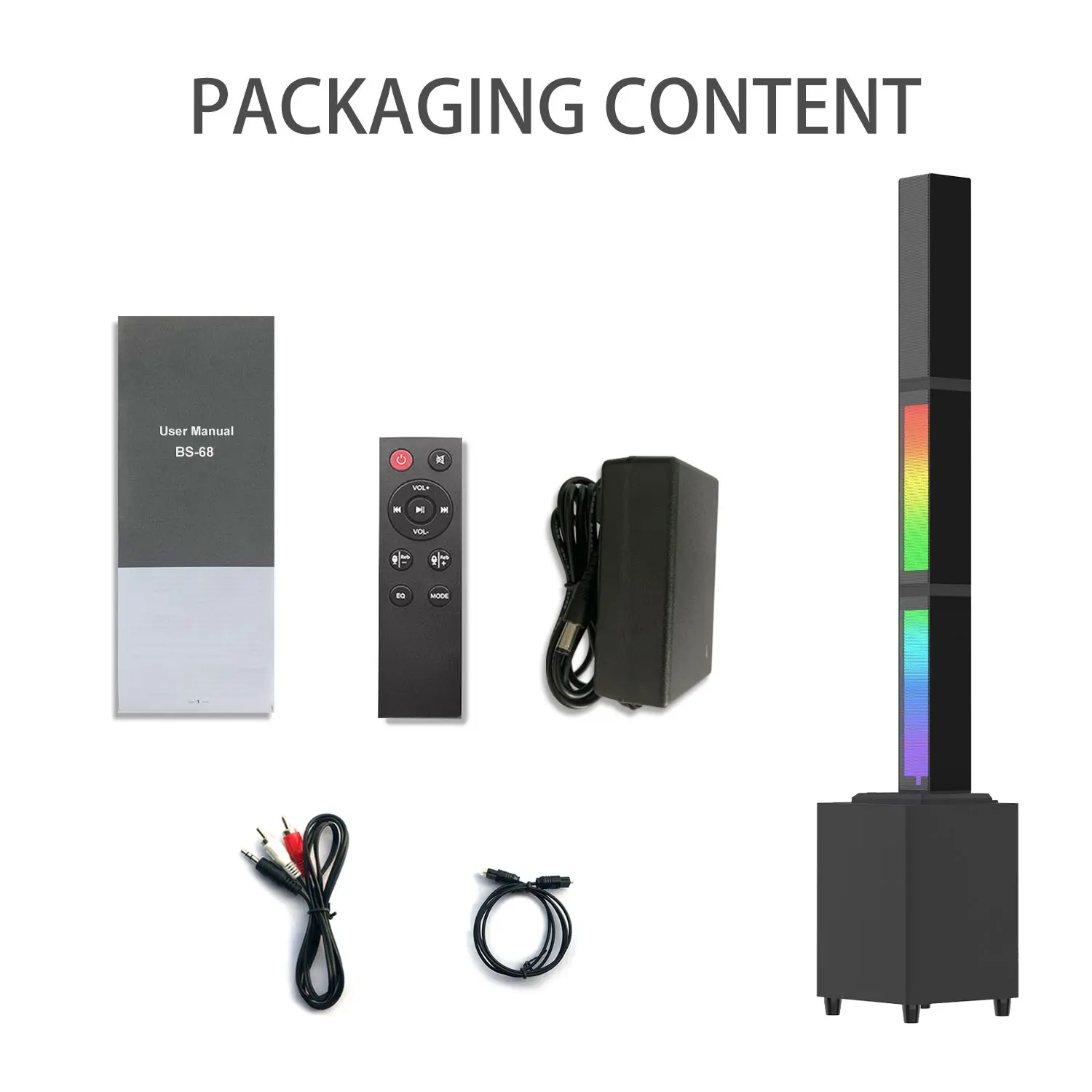 Bluetooth Soundbar With RGB Subwoofer,Heavy Bas 2.1Suround Sound System, Vertical TV speaker, Home Theater Stereo, Bluetooth 5.0, RCA/AUX(/USB/HD(ARC)/Optical Connection