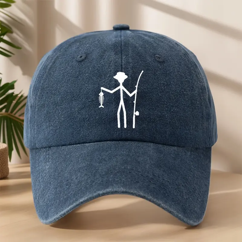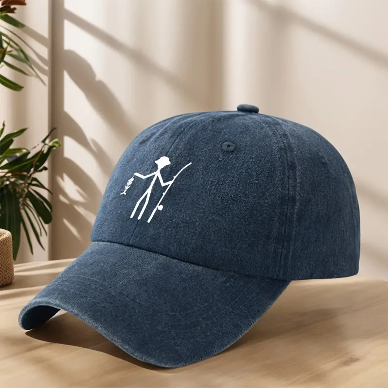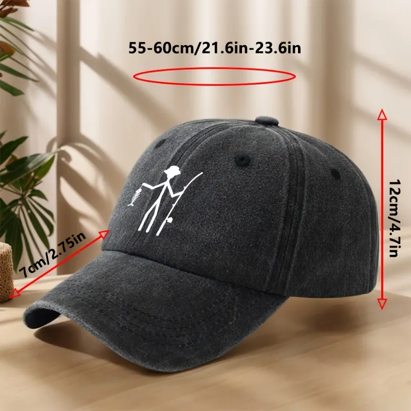 Vintage Baseball Cap - Creative Fishing Design, Soft & Comfortable, Breathable & Sweat-Absorbent Polyester, Adjustable Fit for Outdoor Sports, Fishing, Camping - Black with White Graphic Print, Fishing Hat