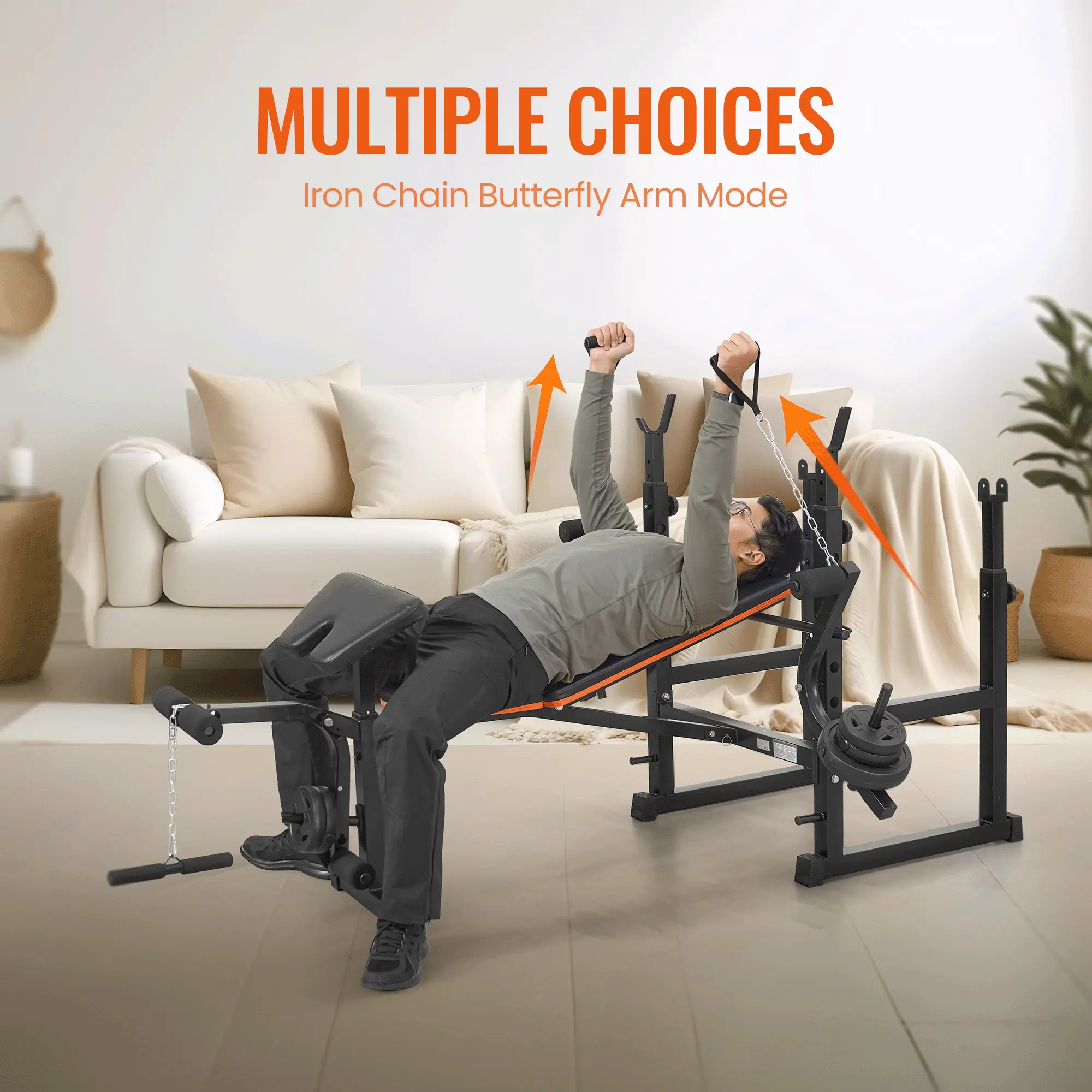 ·Versatile Workouts: Offers a 7-in-1 multi-functional design, integrating a weight bench press rack, butterfly chest expander, and squat rack for comprehensive strength training and muscle shaping.