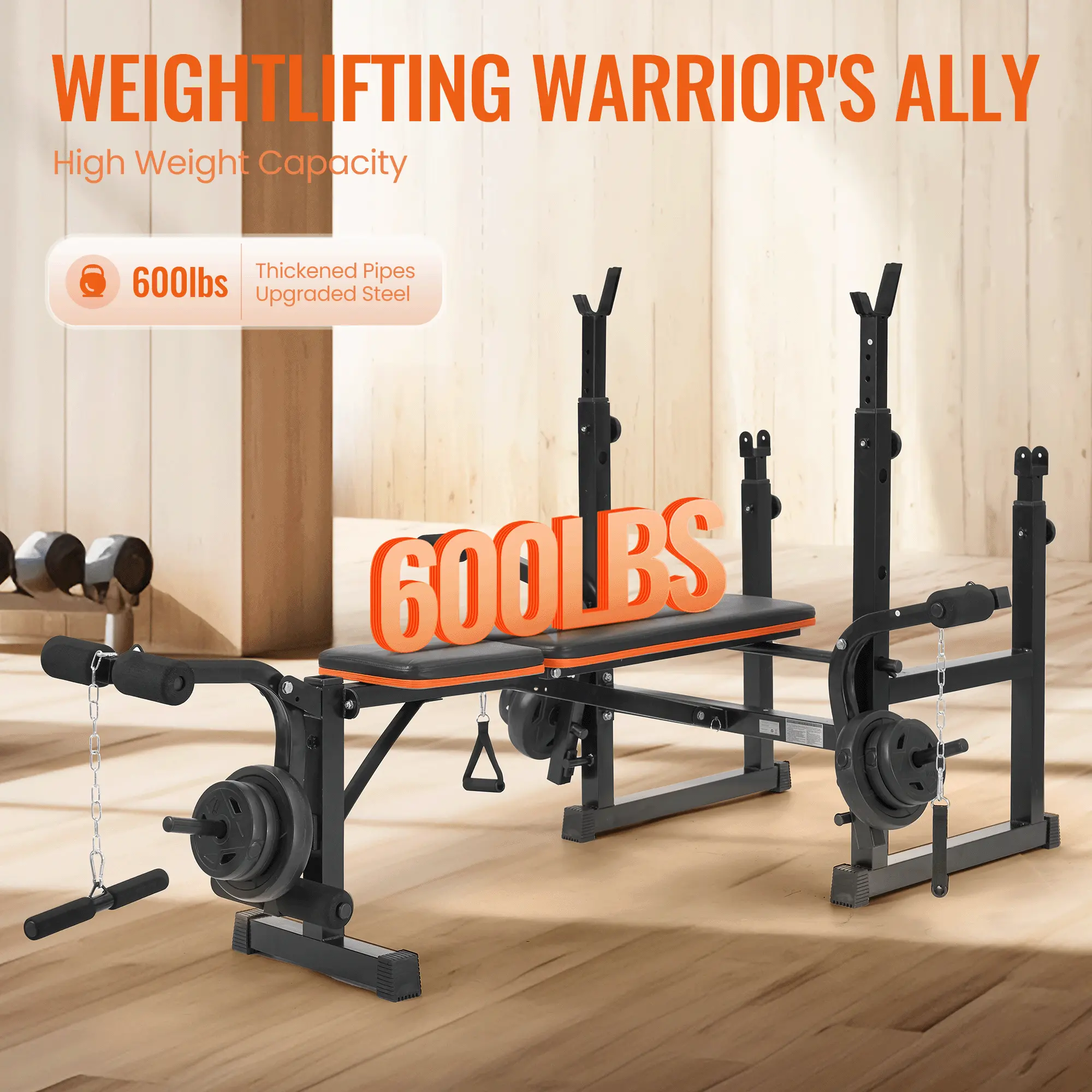 ·Robust Support: Constructed with a sturdy iron frame, this weight bench boasts a maximum load capacity of 600 pounds, ensuring stability for intense strength training.