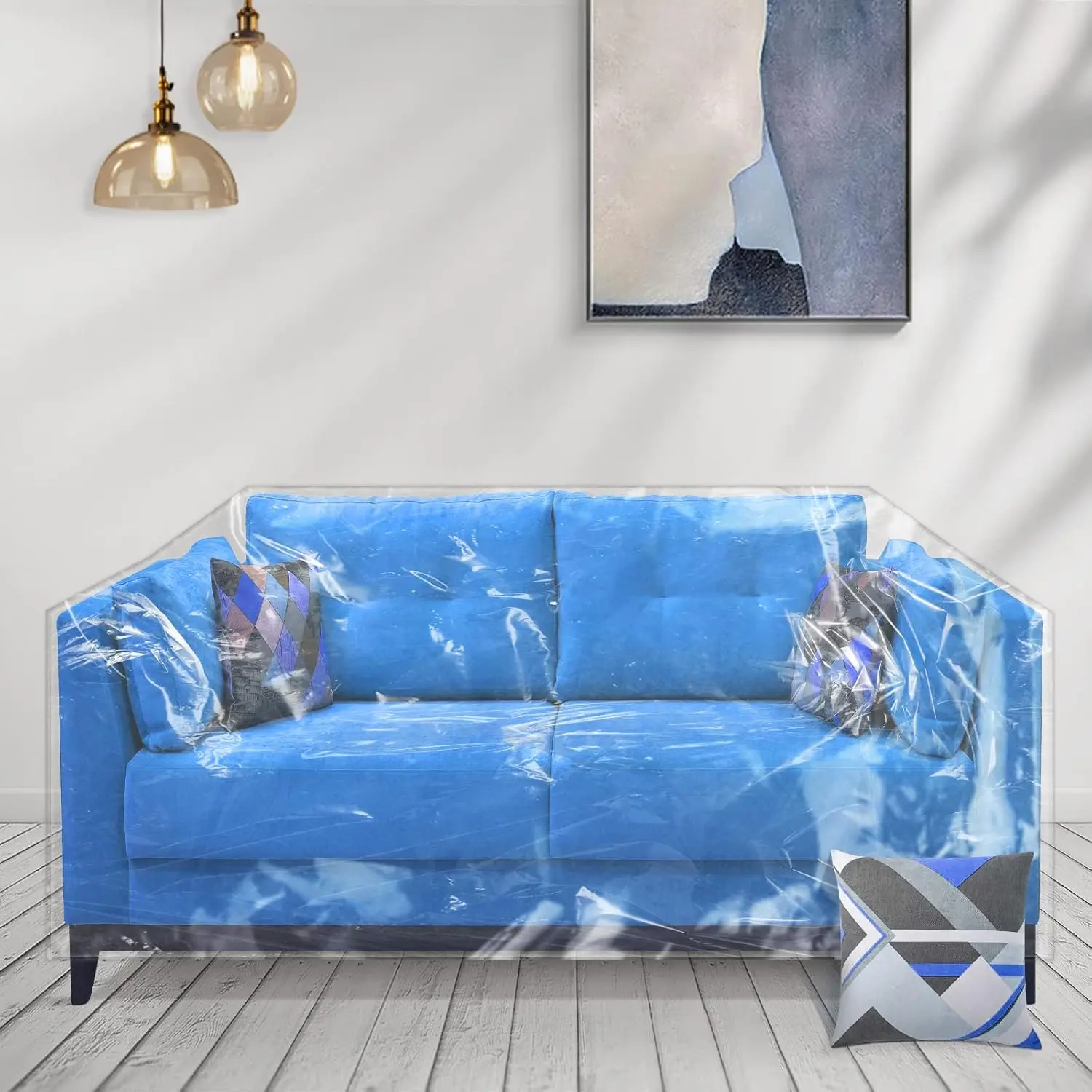 ·WATERPROOF AND DUSTPROOF : There is no need to worry about fruit juice and food spilling on the sofa, nor about dust on the sofa. This plastic couch cover is waterproof and dust-proof, easy to clean, and easy to protect the sofa.