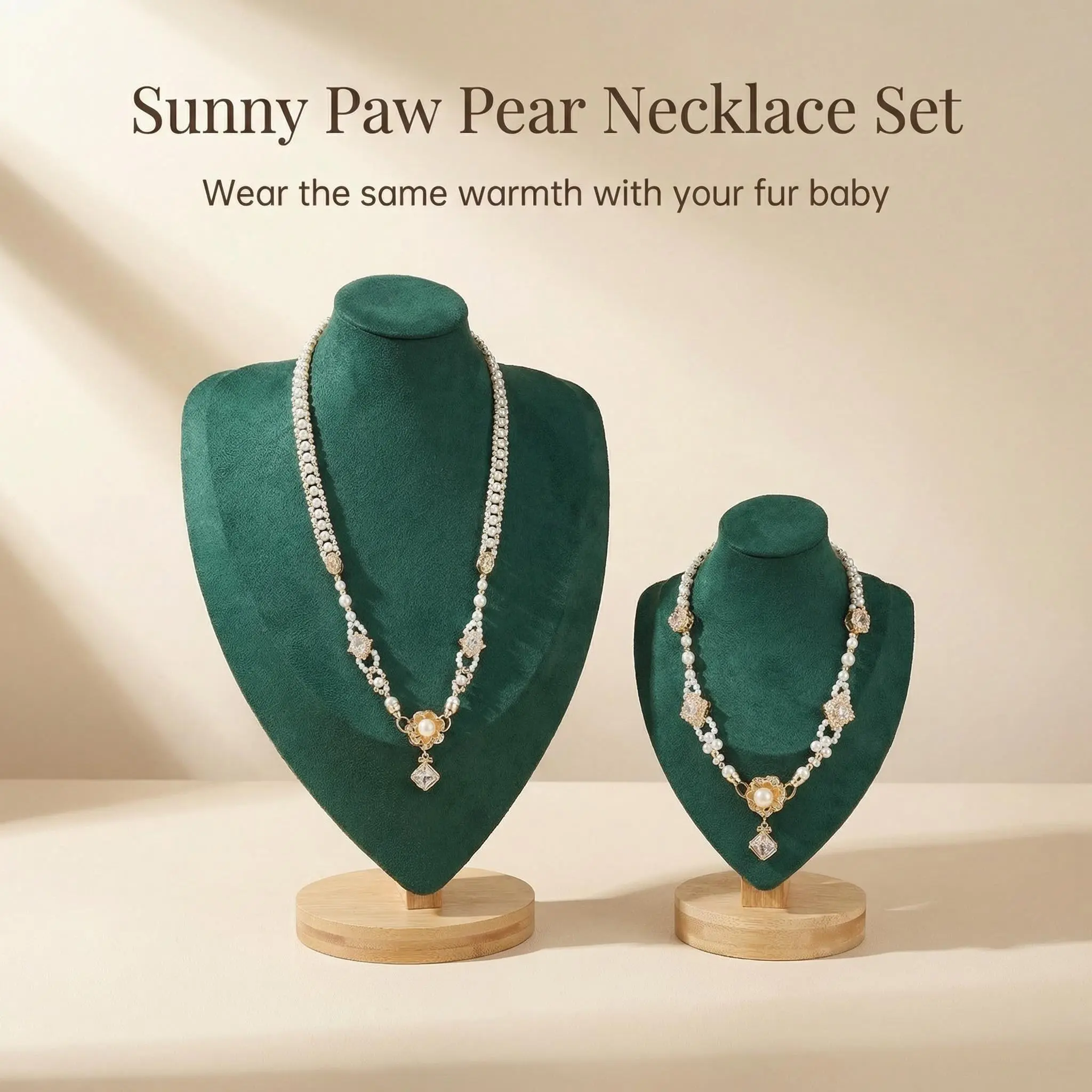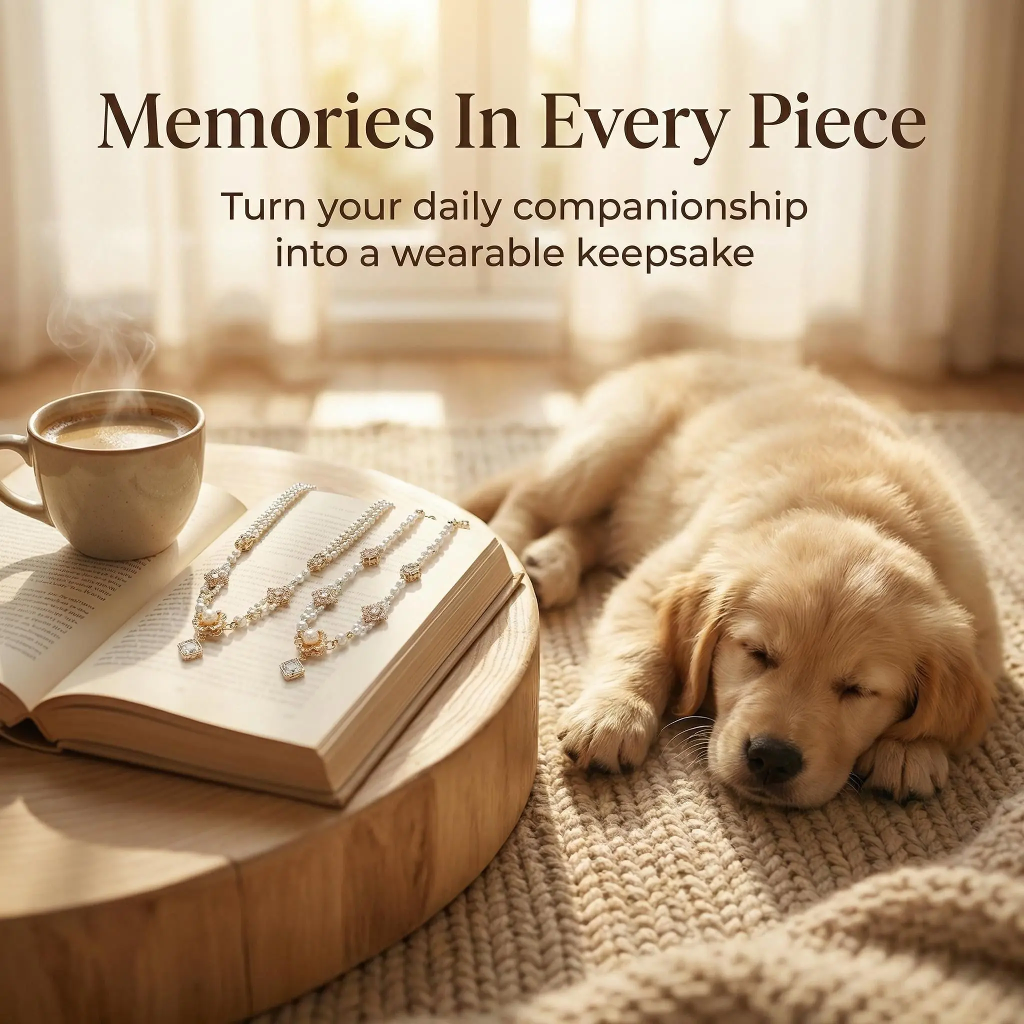 The pearls of this jewelry set are like dewdrops on the lawn in the morning, the golden diamond ornaments are the light spots raised by pets running in the sunlight, and the exquisite metal flower buckles are the paw prints when they run tired and fall into their owner's arms. It is said that the female owner wears it every morning and takes a walk with her pet in the park. It always likes to step on the dew covered lawn, and when it comes back, its claws are glistening with water droplets. The owner then condenses this morning companionship and vitality into the jewelry.