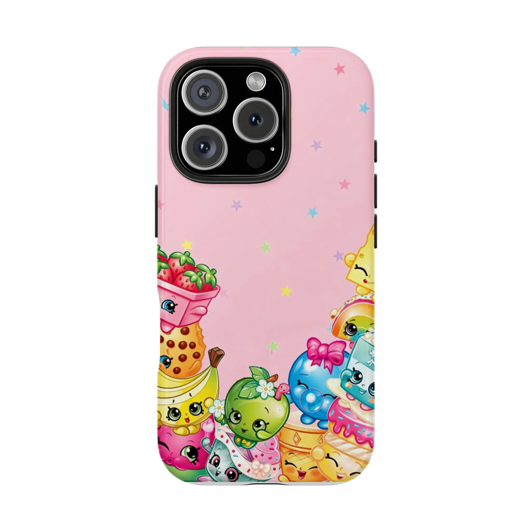 Shopkins cartoon print phone case, suitable for iPhone 11-17 Pro Max/Plus and Samsung Galaxy S23-25.