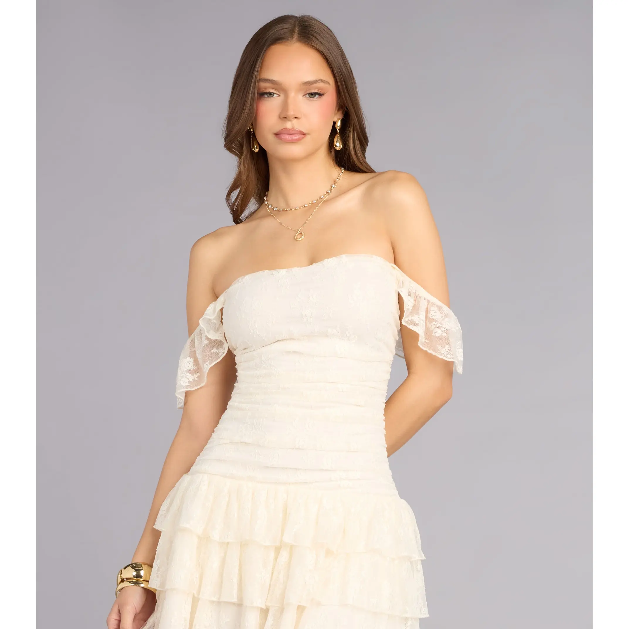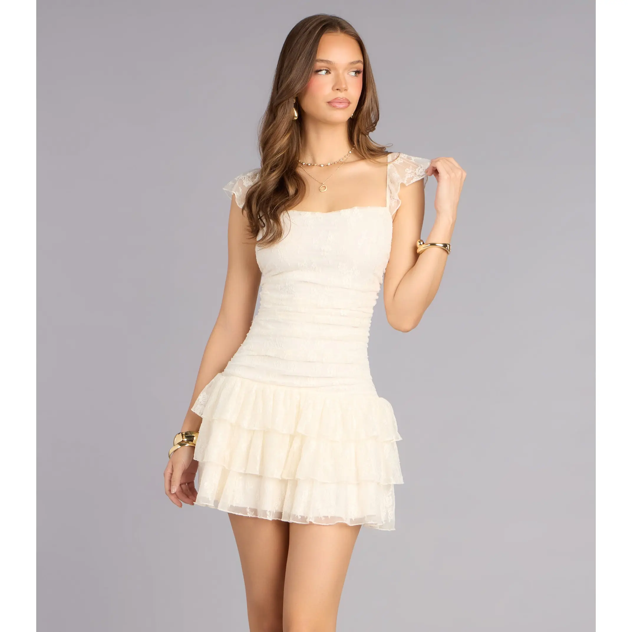 Soft plans, big entrance. This lace ruffle skater dress hugs just right through the waist, then flares into a tiered moment made for parties, brunch, and camera-ready moments.