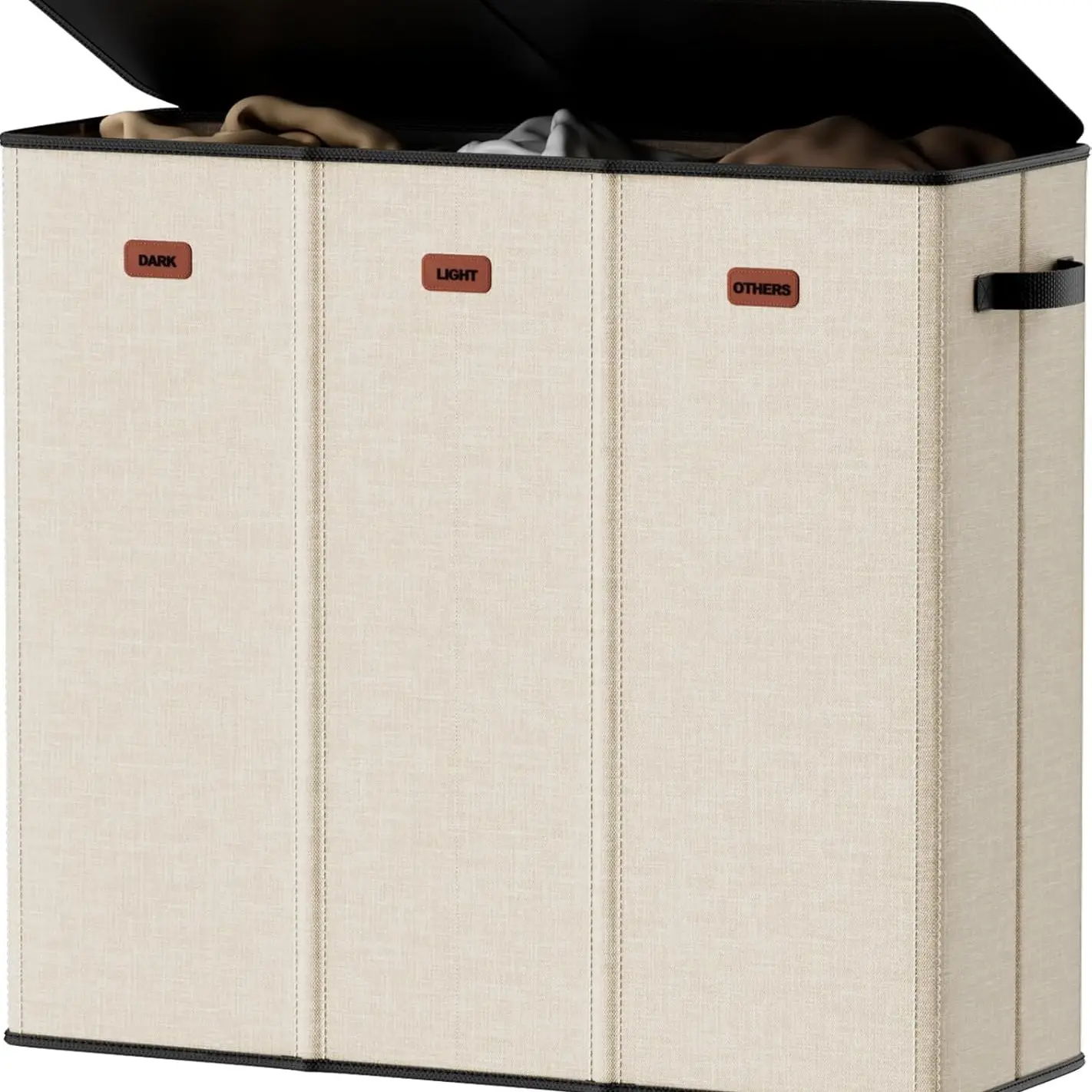 ·【Stylish Lid & Odor Control for a Tidy Home】The sturdy lid of this divided hamper hides laundry, blocks odors, and doubles as a decorative surface. Maintain a clean, aesthetic space that boosts your daily mood and impresses guests—all while keeping your 3 bin laundry hamper discreetly functional