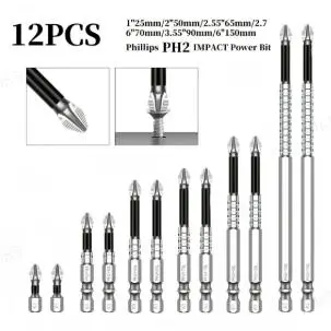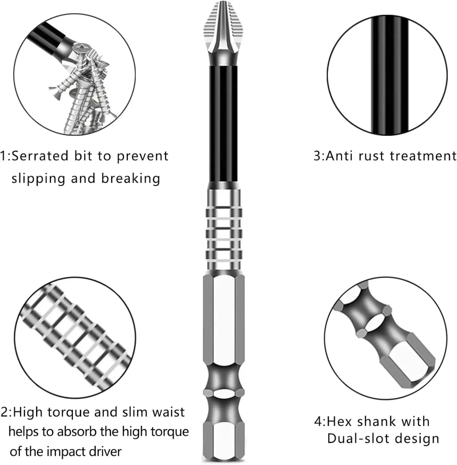 K5 Non-slip High Hardness Bit S2 Strong Magnetic 5A Black Non-slip Cross Head Electric Drill Electric Screwdriver Bit Size:(25mm,50mm,65mm,70mm,90mm,150mm)*2