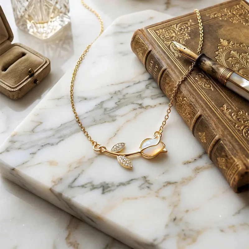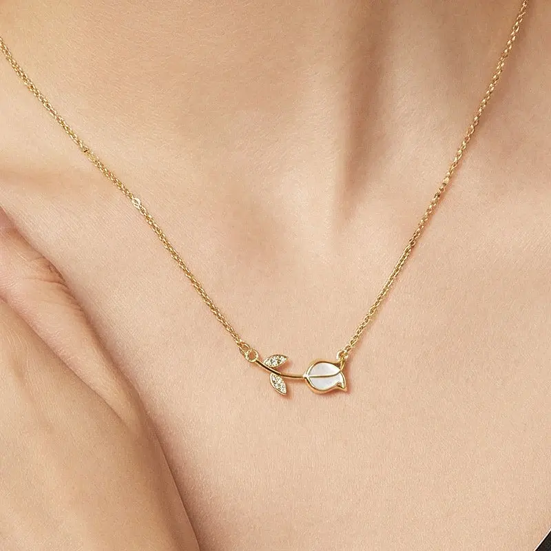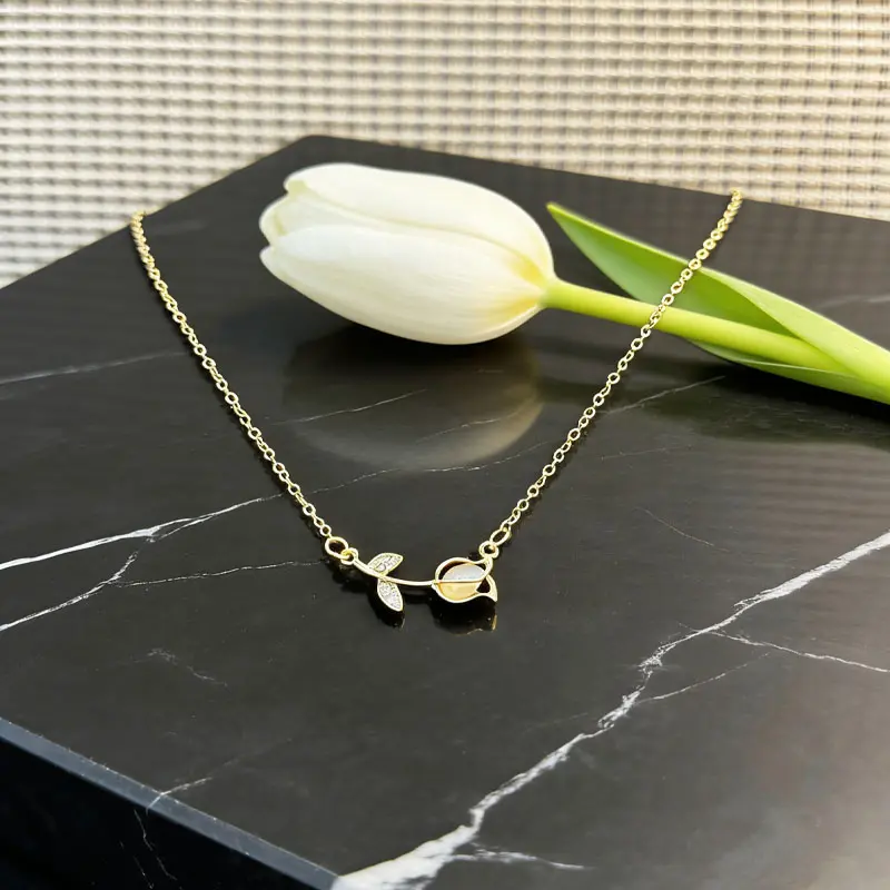 Decorative Details: Stunning tulip flower charm, with a lustrous shell inlay center and sparkling zircon stones set on the leaves, creating a sweet, luxurious, light-catching sparkle