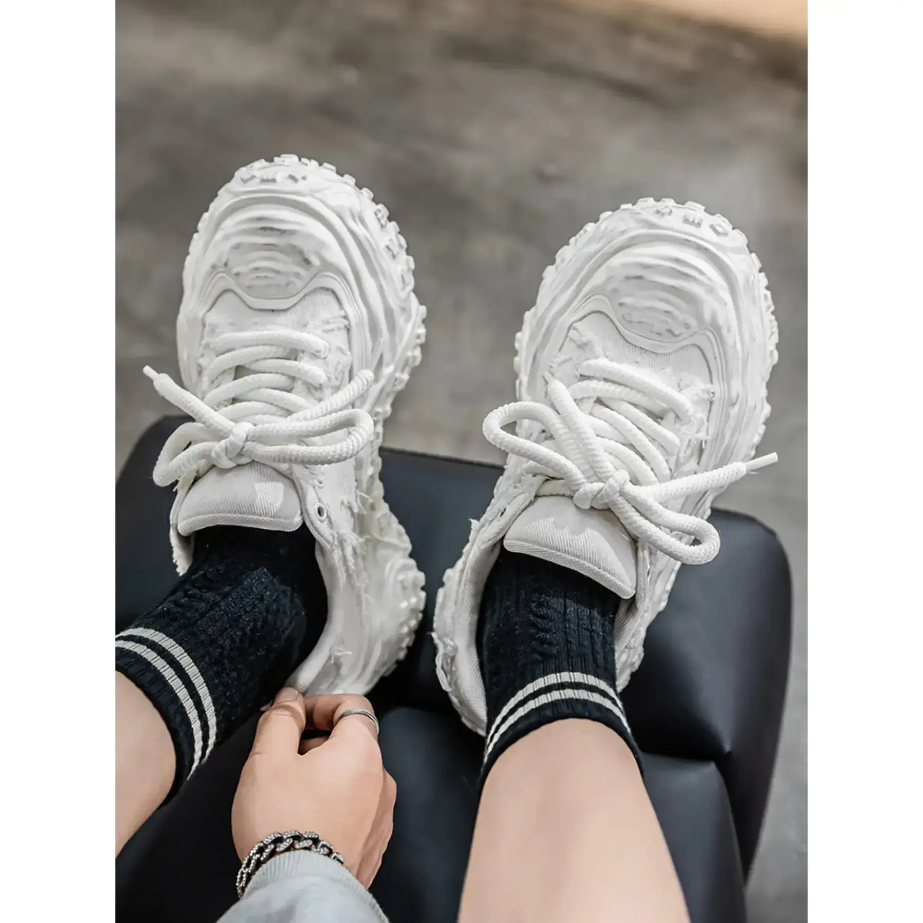 Featuring a hand-distressed frayed denim upper, a sculpted 2-inch+ chunky platform sole, and a vintage washed finish, these sneakers blend grunge aesthetics, retro workwear, and luxury streetwear into one statement-making design. Perfect for concerts, street style shoots, festival season, and everyday wear, theyre the ultimate must-have for anyone who lives for edgy, one-of-a-kind style. Available in 2 iconic colorways to match every vibe.