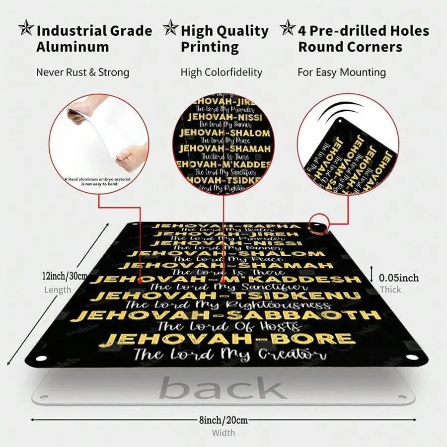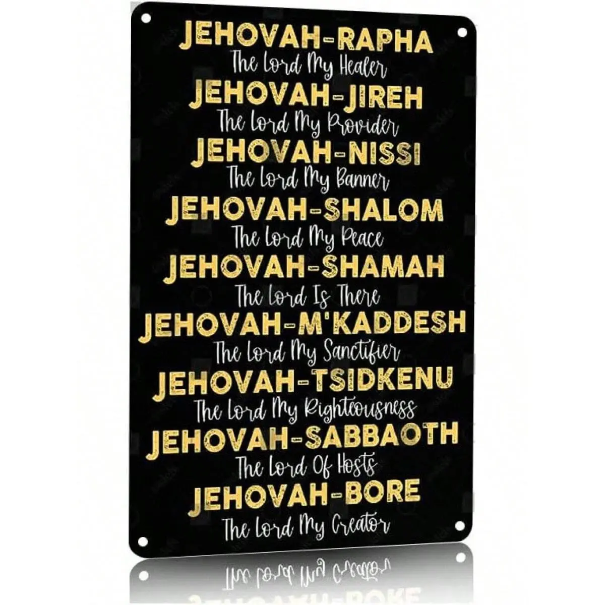 Vintage "Names of God – Jehovah" Bible Verse Metal Sign | 8x12 Inch Religious Aluminum Tin Wall Art for Home, Bedroom, Church & Office | Inspirational Scripture Decor with Pre-Drilled Holes, Easy to Hang