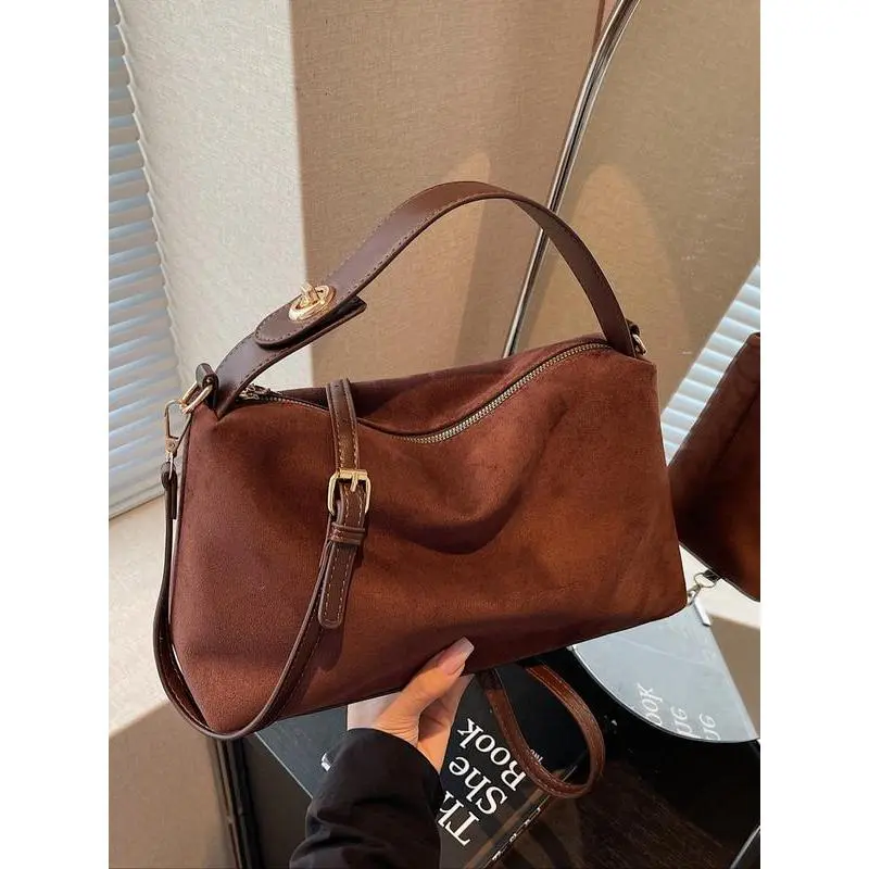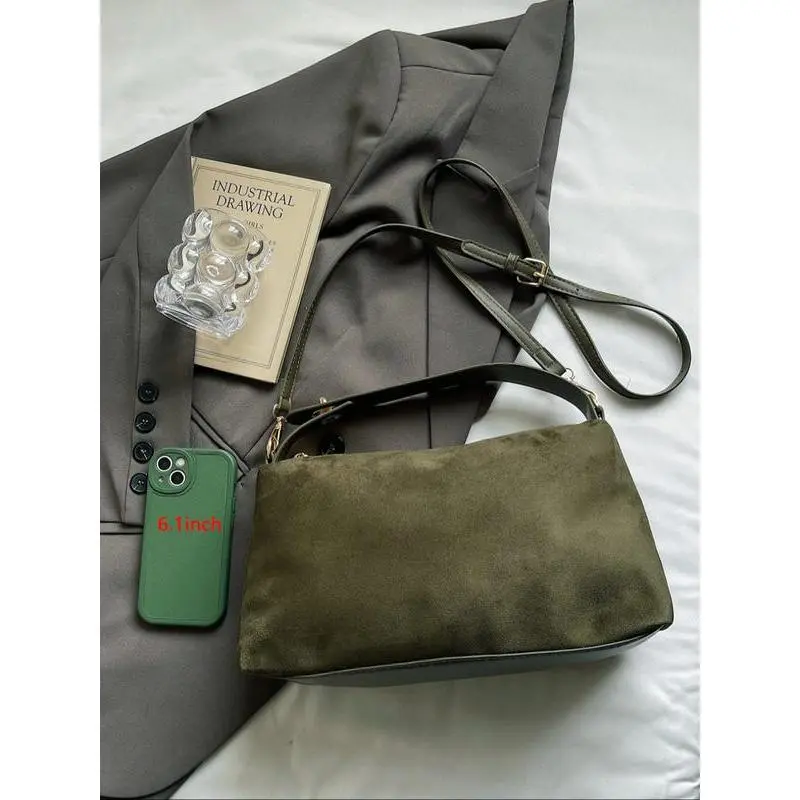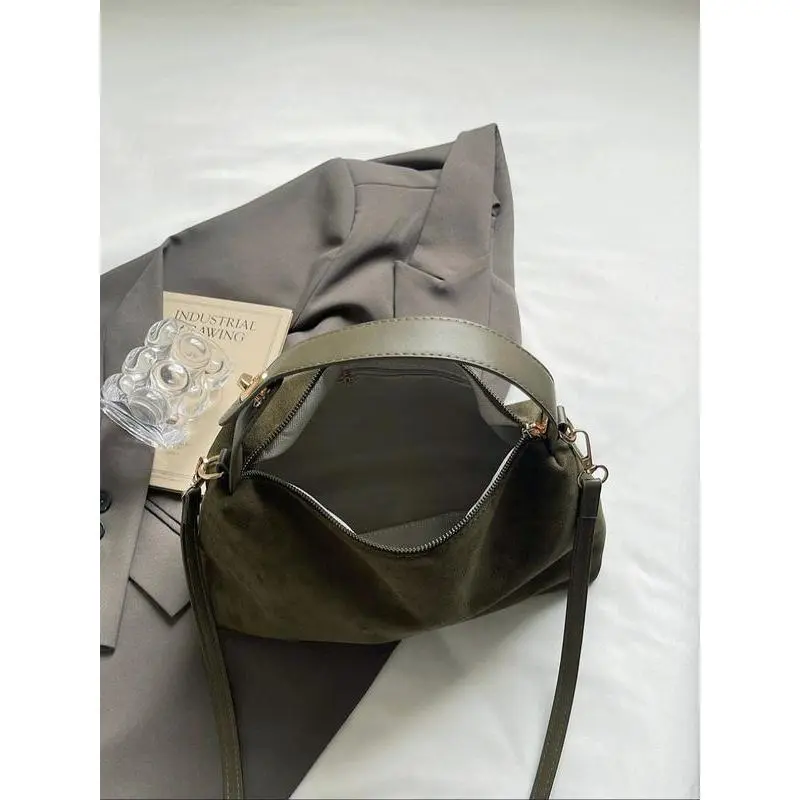 Elevate your everyday style with this timeless suede top-handle bag, crafted for the modern American woman who values minimalist luxury and versatile functionality.Made from premium soft faux suede, this bag features a slouchy, vintage-inspired silhouette that exudes effortless chic, perfect for transitioning seamlessly from work meetings to casual outings. The secure zipper closure keeps your essentials safe and organized, while the detachable, adjustable crossbody strap lets you switch between a structured top-handle carry and a hands-free crossbody style to match your vibe.With a spacious interior, it easily fits your phone, wallet, keys, makeup, and daily work essentials, making it the ultimate versatile daily handbag. The sleek olive green hue and gold-tone hardware add a subtle, sophisticated touch that pairs flawlessly with every outfit, from office blazers to weekend casual looks.Durable, lightweight, and endlessly stylish, this bag is a must-have addition to any American fashion lovers collection. Whether youre heading to work, running errands, or meeting friends for brunch, its your go-to accessory for timeless, minimalist style.Grab yours now and elevate your daily carry!