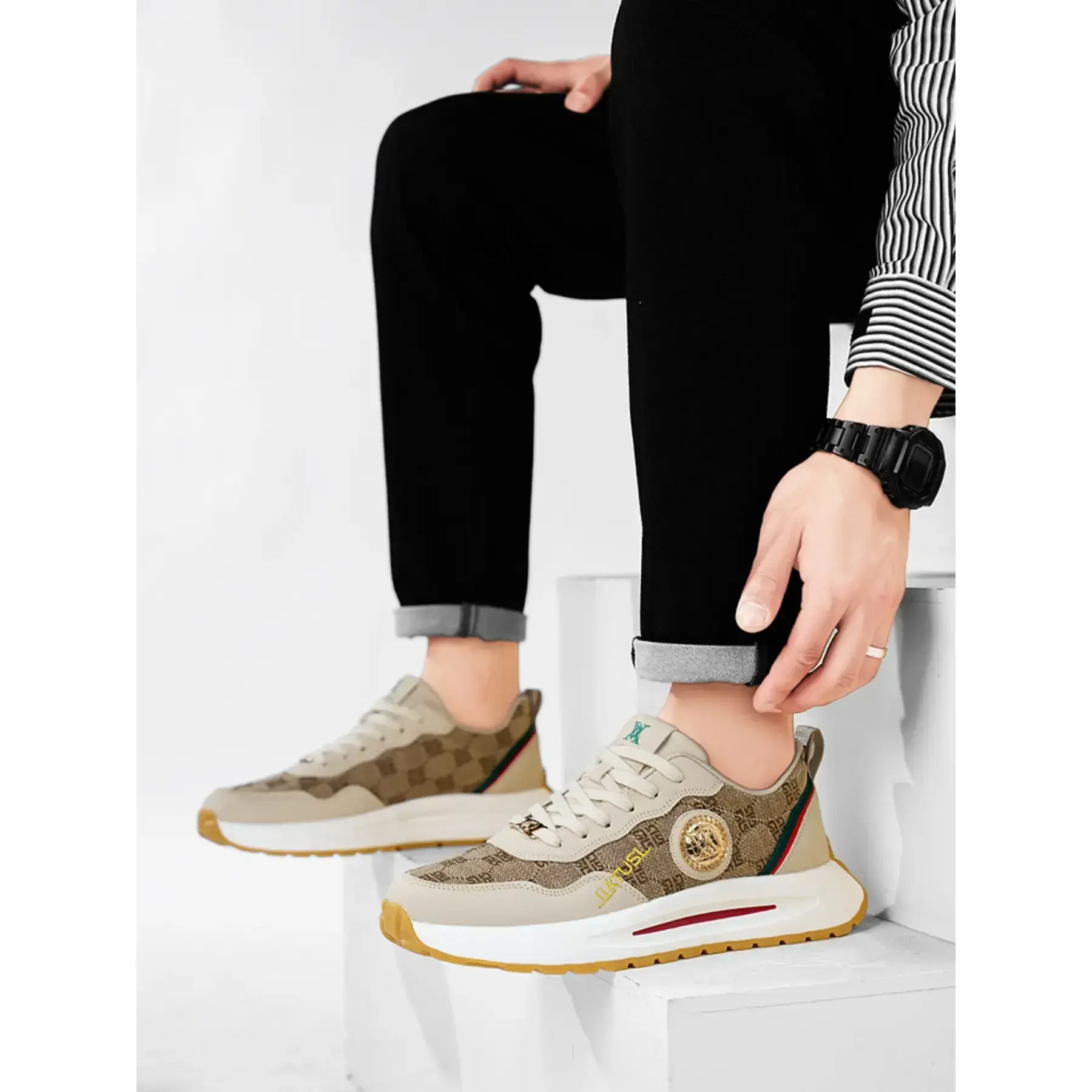 Elevate your everyday fits with these head-turning khaki luxury-inspired chunky sneakers, made for the bold American trendsetter who craves high-end style without the designer price tag.Rock the iconic retro monogram pattern paired with eye-catching gold emblem accents, bringing a timeless, opulent vibe to any outfit. The thick, cushioned sole delivers unbeatable all-day comfort and a subtle height boost, while the durable upper stands up to daily wear, city walks, and street style sessions. The classic red-green stripe detail adds a pop of luxury, making these kicks endlessly versatilepair flawlessly with jeans, chinos, or streetwear fits.Lightweight, supportive, and packed with old-money street energy, these sneakers are the ultimate statement piece for anyone looking to stand out. Whether youre hitting the streets, running errands, or styling a casual fit, these shoes blend comfort, edge, and timeless luxury.Grab your pair now and level up your streetwear gamethese viral chunky sneakers wont last long!