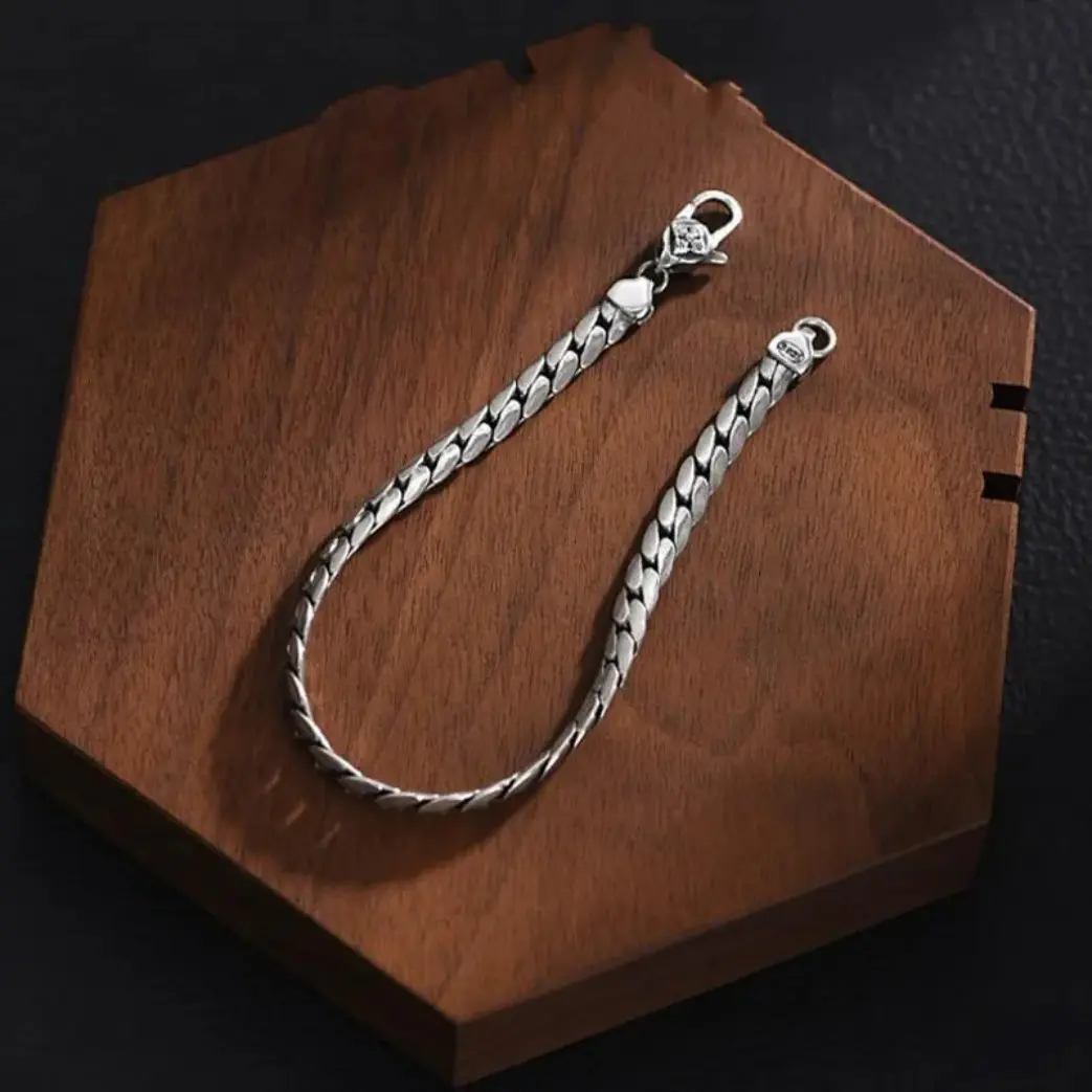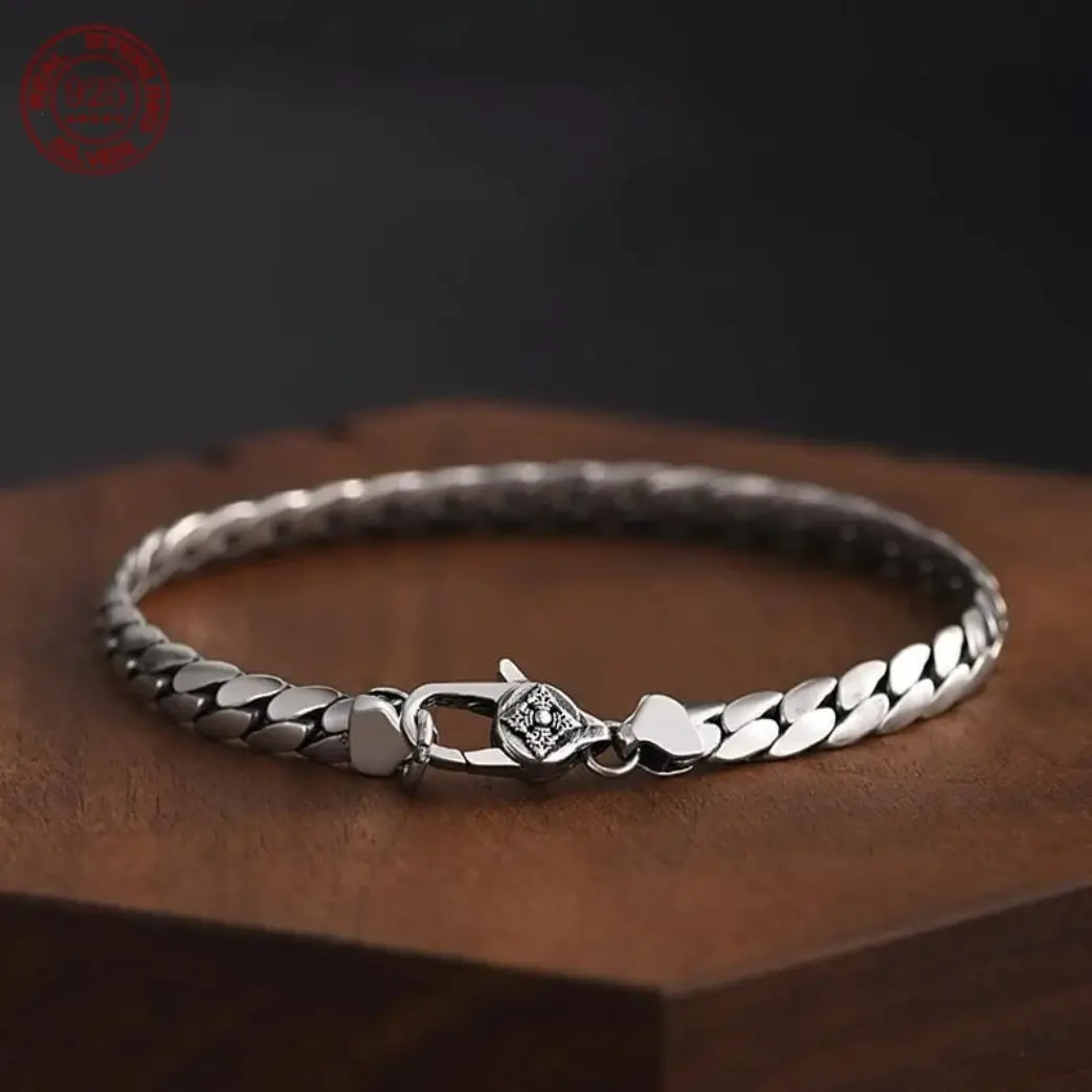 S925 Sterling Silver Cuban Bracelet for Men & Women, Handwoven Elegant Chain Jewelry Gift