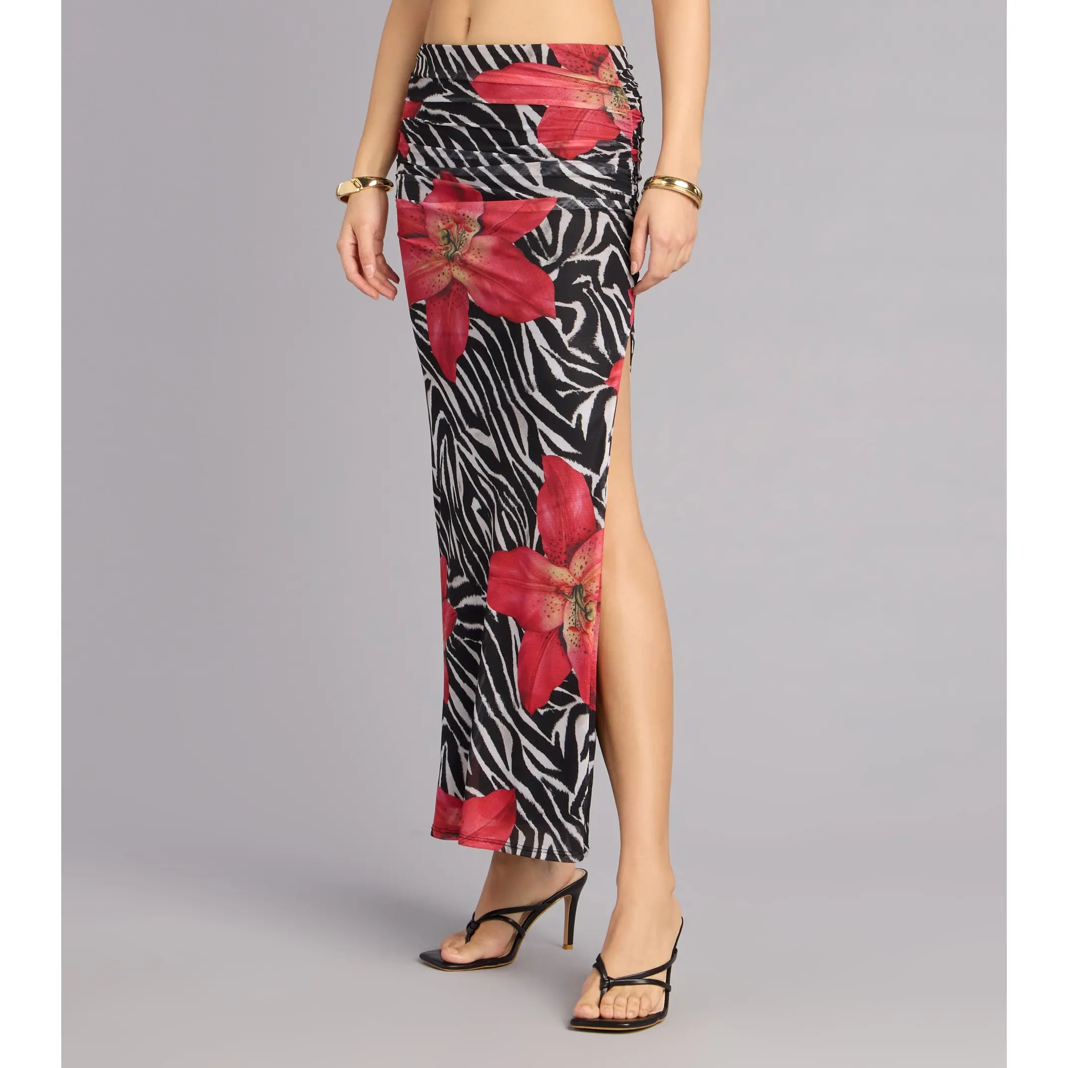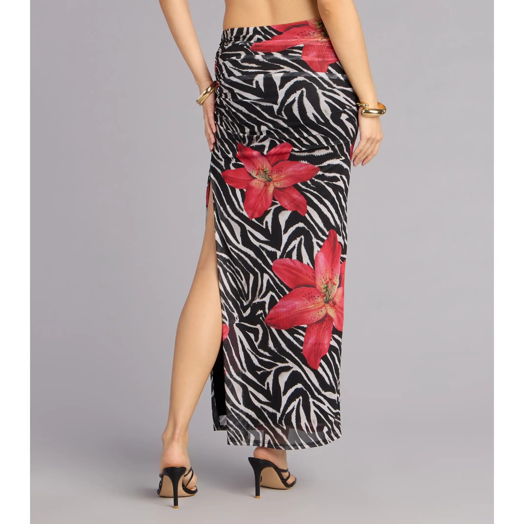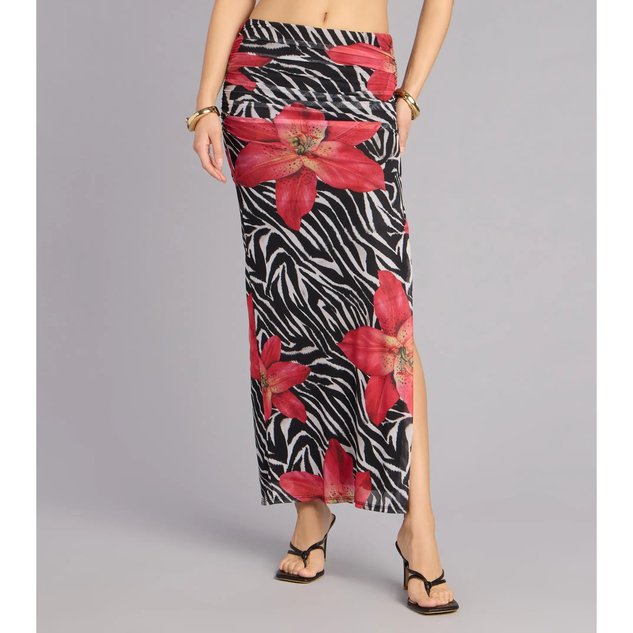 Not your average statement maxi skirt—this one knows how to get attention without trying. The high-rise waist and ruching hug just right, with a side slit that flaunts your style from a chill dinner to dressed-up plans.