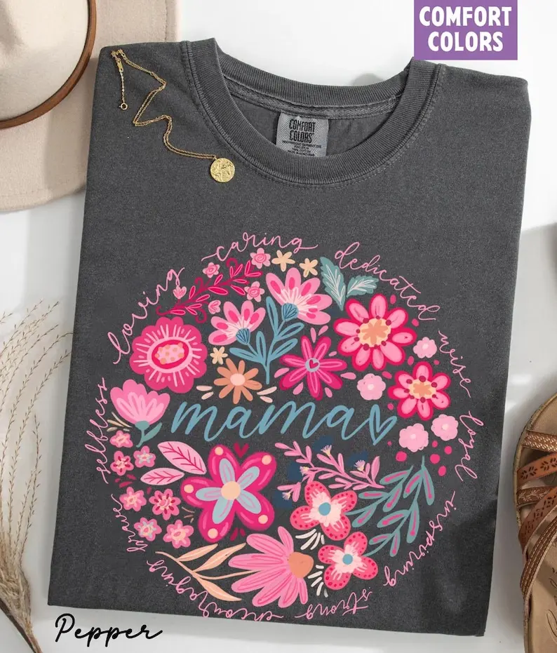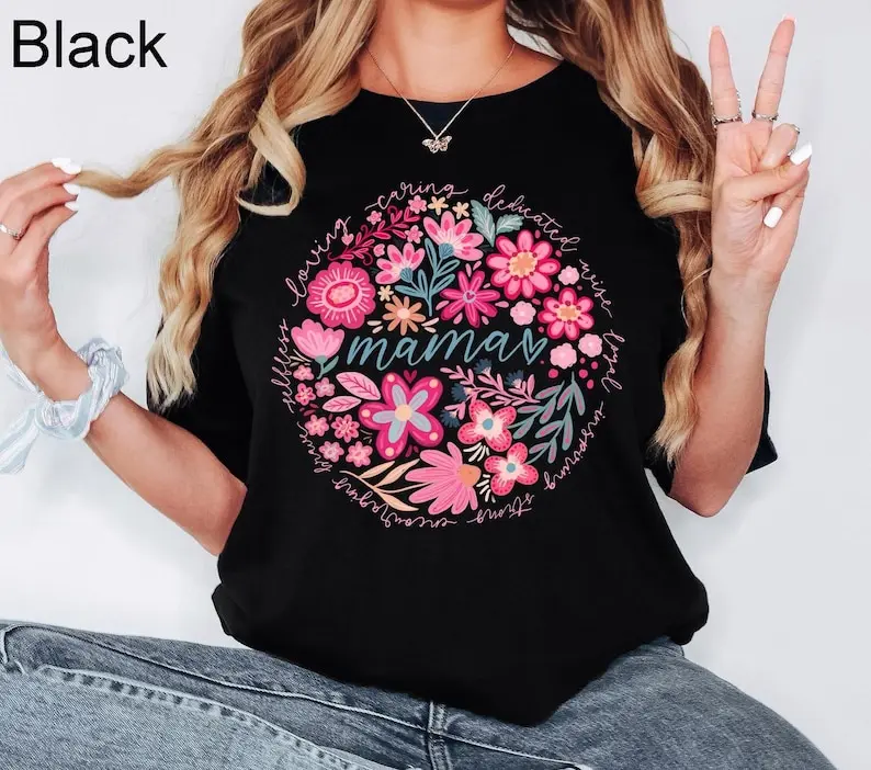 5. Boho Floral Mama Shirt Mothers Day Gift Trendy Mom Spring Tee Cute Gift for Mom Oversized Shirt for Women Flowers Mama Shirt #giftformom